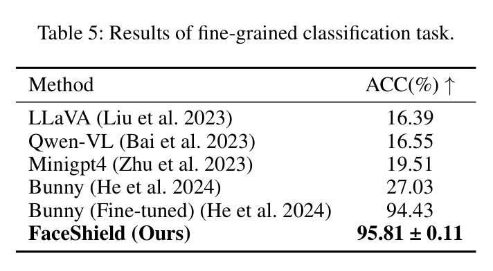 - FaceShield在多个基准数据集上的实验表现优于以往的深度学习和多模态大型语言模型。