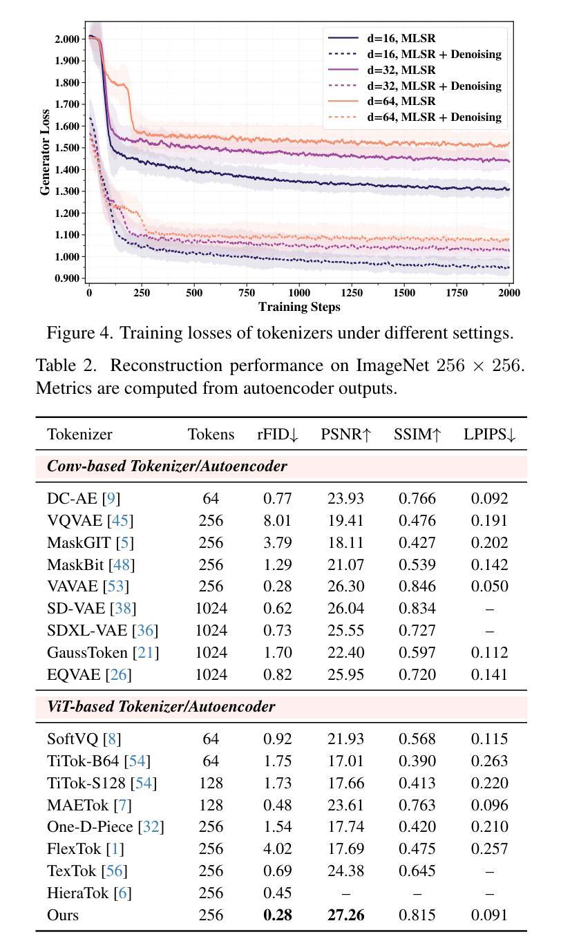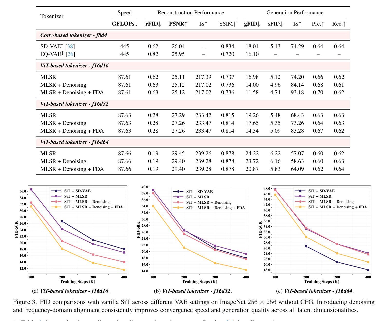 - 在ImageNet 256×256基准测试上,Denoising-VAE实现了先进的重建质量和具有竞争力的生成性能。