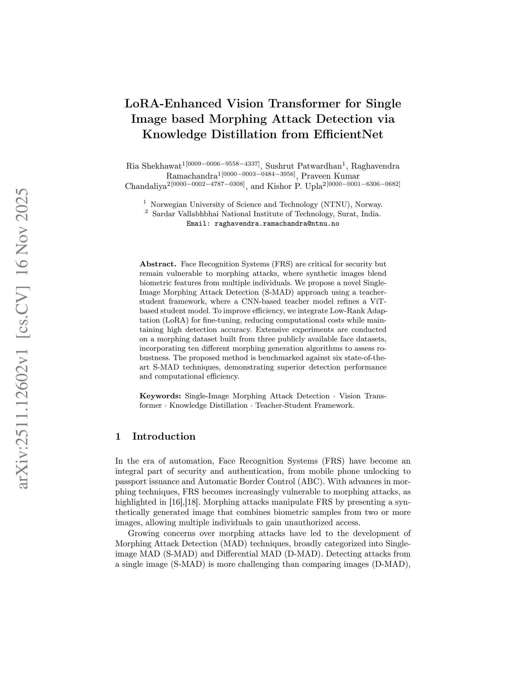 Authors:Ria Shekhawat, Sushrut Patwardhan, Raghavendra Ramachandra, Praveen Kumar Chandaliya, Kishor P. Upla