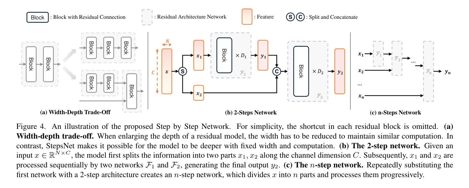 - StepsNet通过分离特征通道并逐渐增加宽度,让模型逐步学习。