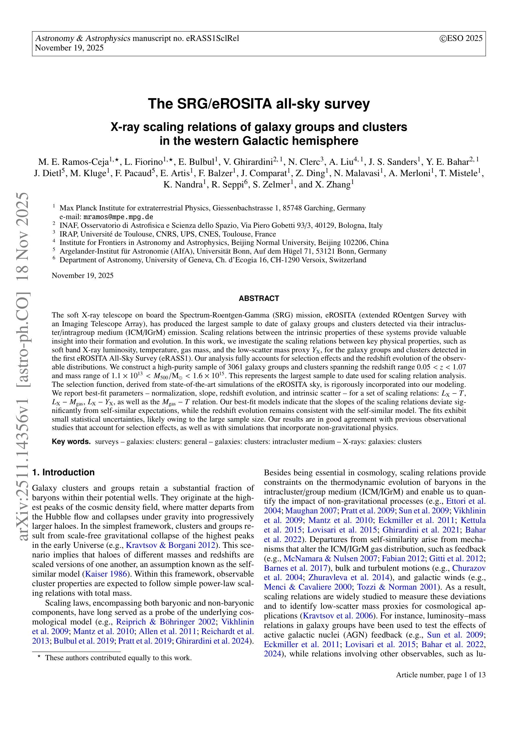 Authors:M. E. Ramos-Ceja, L. Fiorino, E. Bulbul, V. Ghirardini, N. Clerc, A. Liu, J. S. Sanders, Y. E. Bahar, J. Dietl, M. Kluge, F. Pacaud, E. Artis, F. Balzer, J. Comparat, Z. Ding, N. Malavasi, A. Merloni, T. Mistele, K. Nandra, R. Seppi, S. Zelmer, X. Zhang