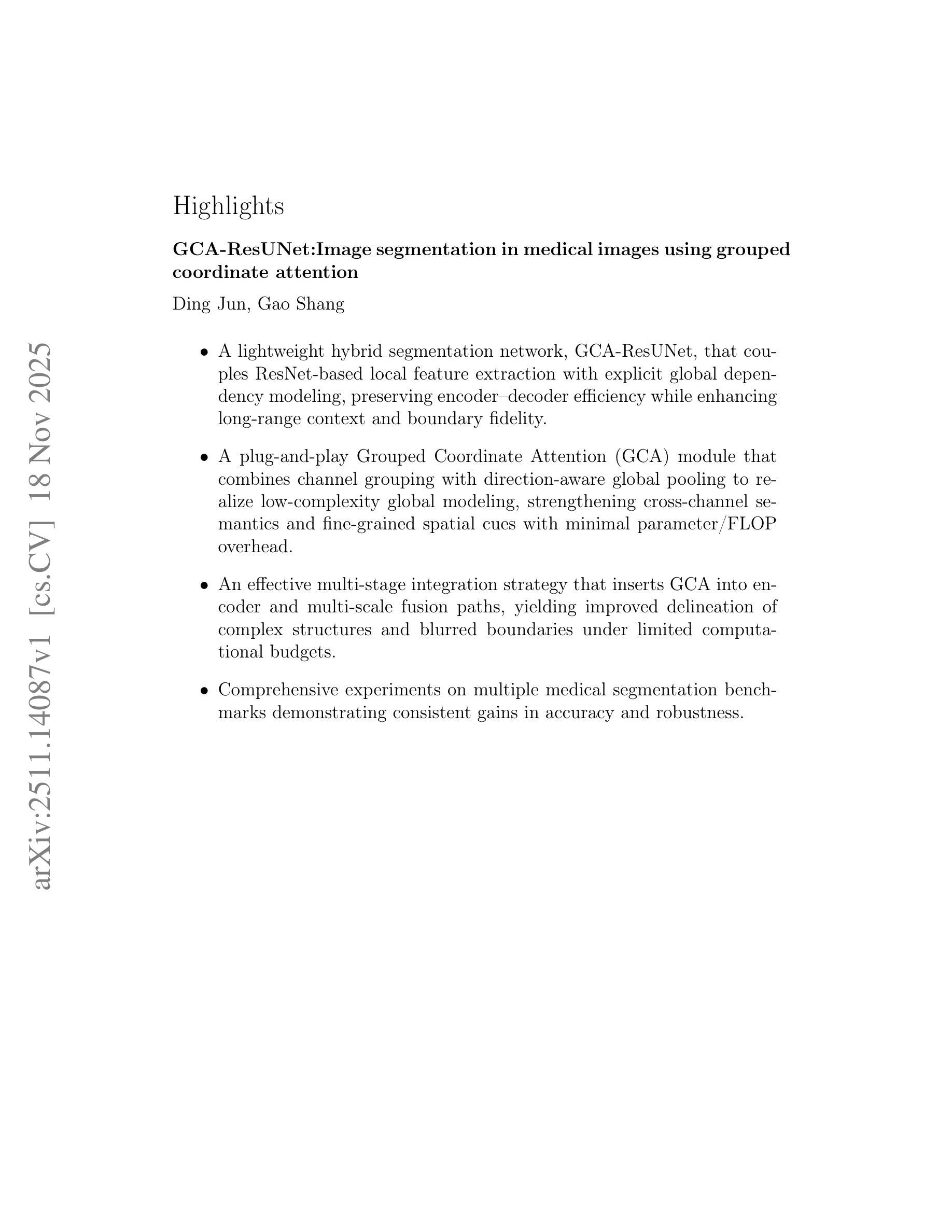 GCA-ResUNet:Image segmentation in medical images using grouped coordinate attention
