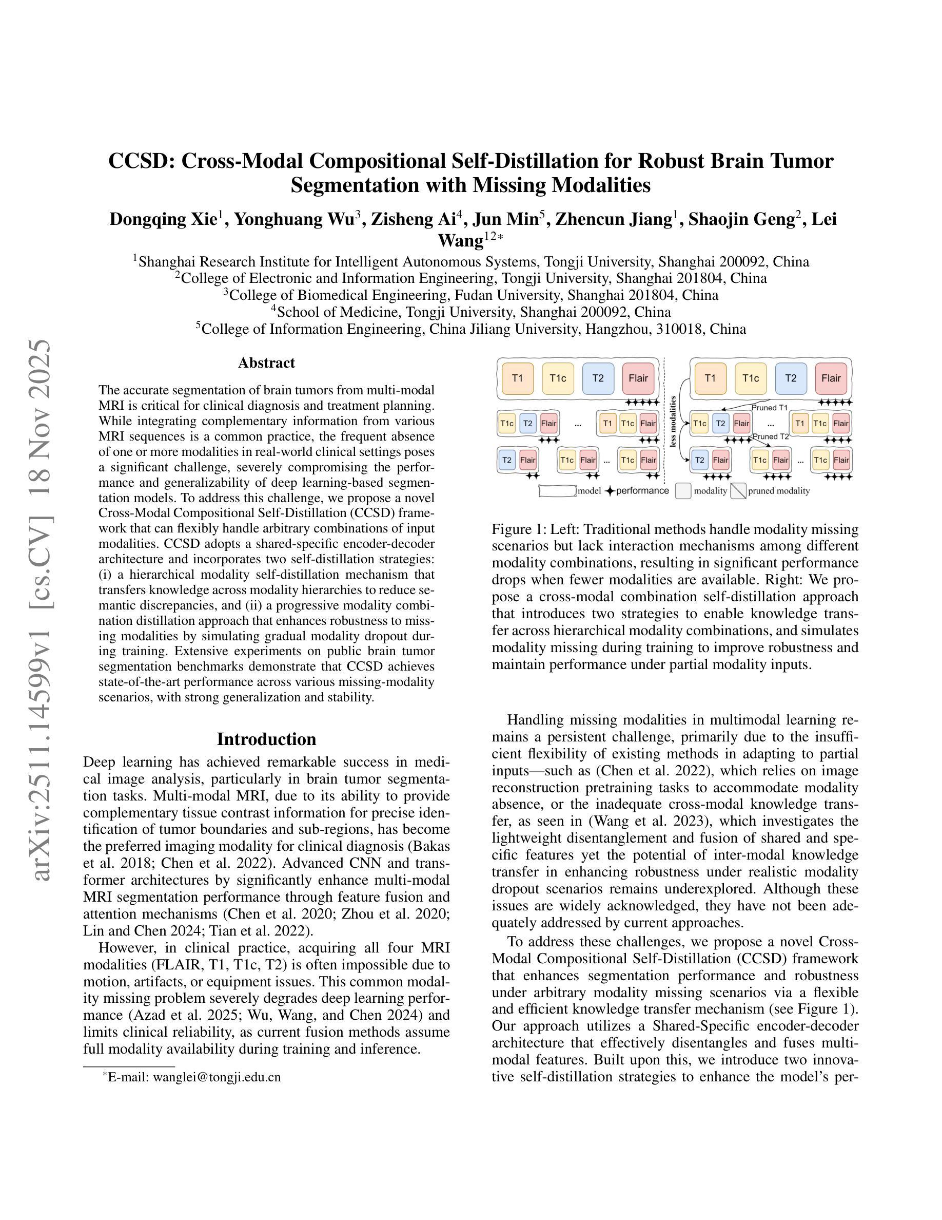 - 准确的多模态MRI脑肿瘤分割对临床诊断和治疗计划至关重要。