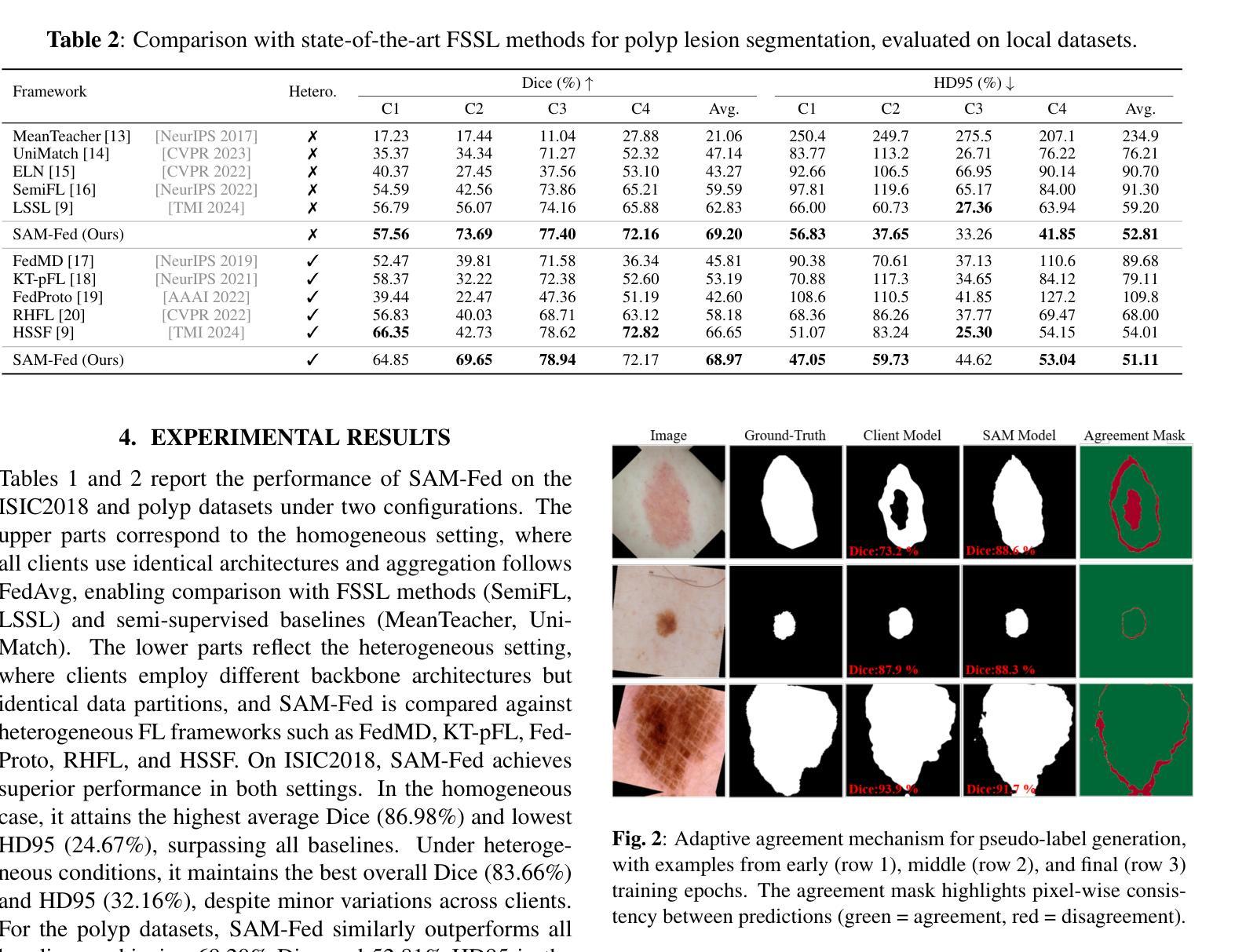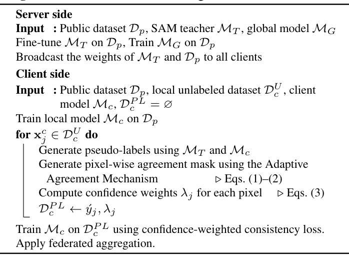 - SAM-Fed通过双重知识蒸馏和自适应共识机制优化像素级监督。