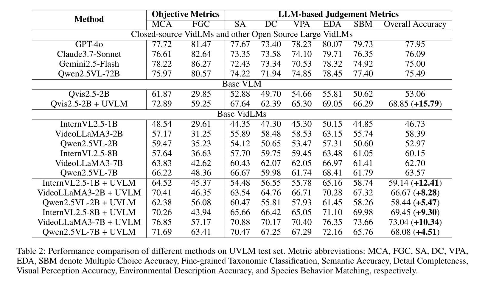 - 通过对代表性VidLMs进行实验,发现在UVLM上微调可提高对水下世界的理解。