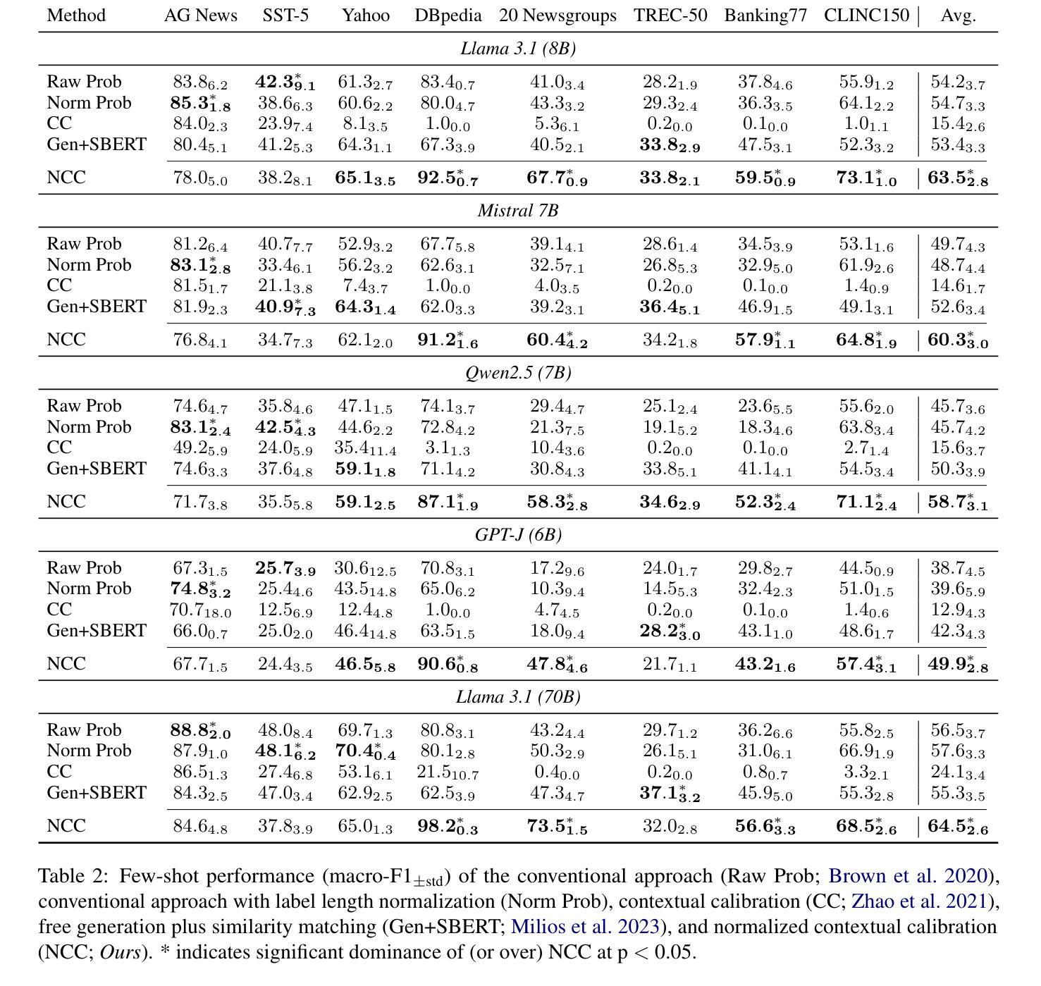 - 结合上下文学习,NCC对少样本示例选择更加稳健,并产生更可靠信心估计。