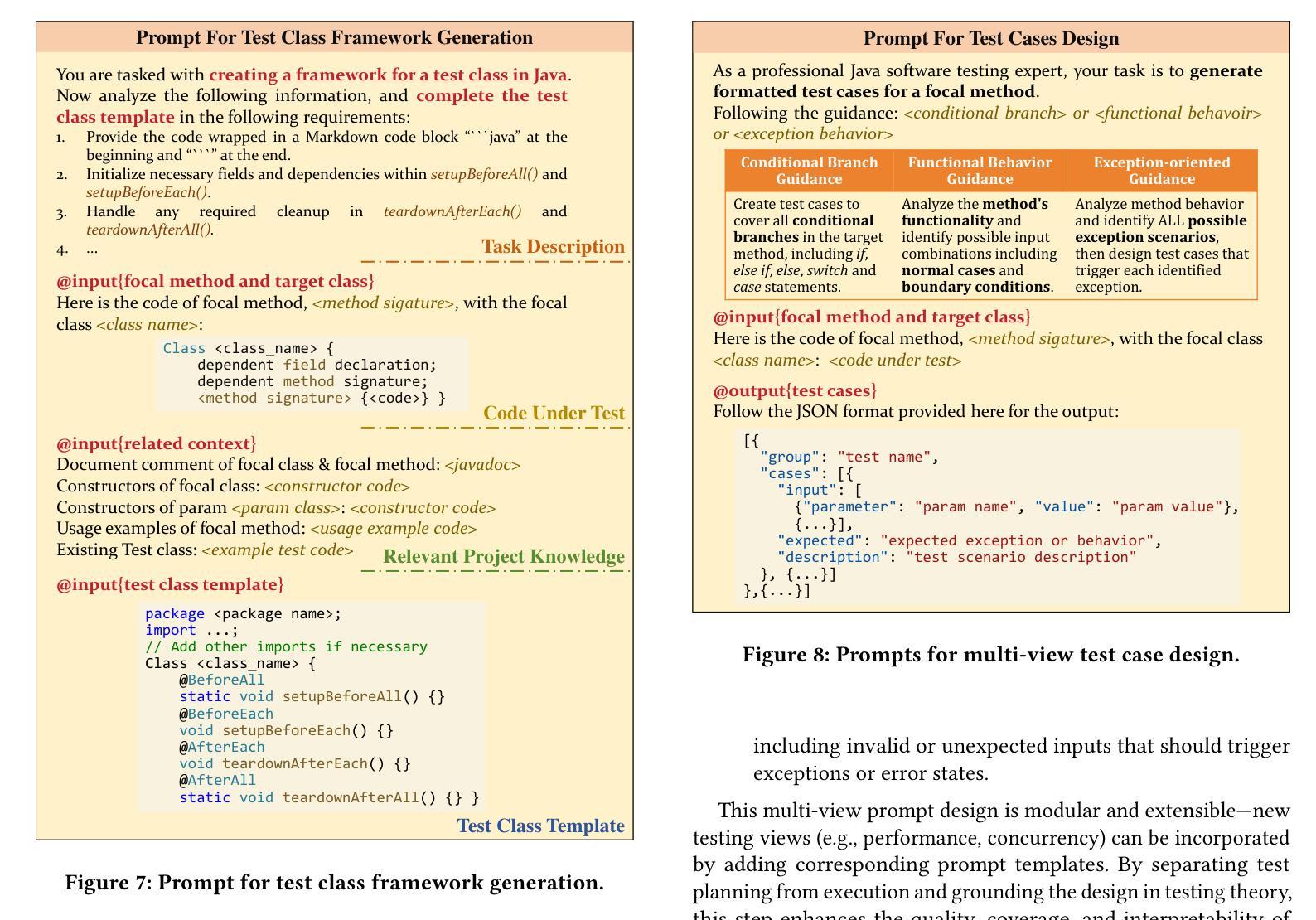 - 多角度提示策略引导LLM考虑多种测试启发式方法。