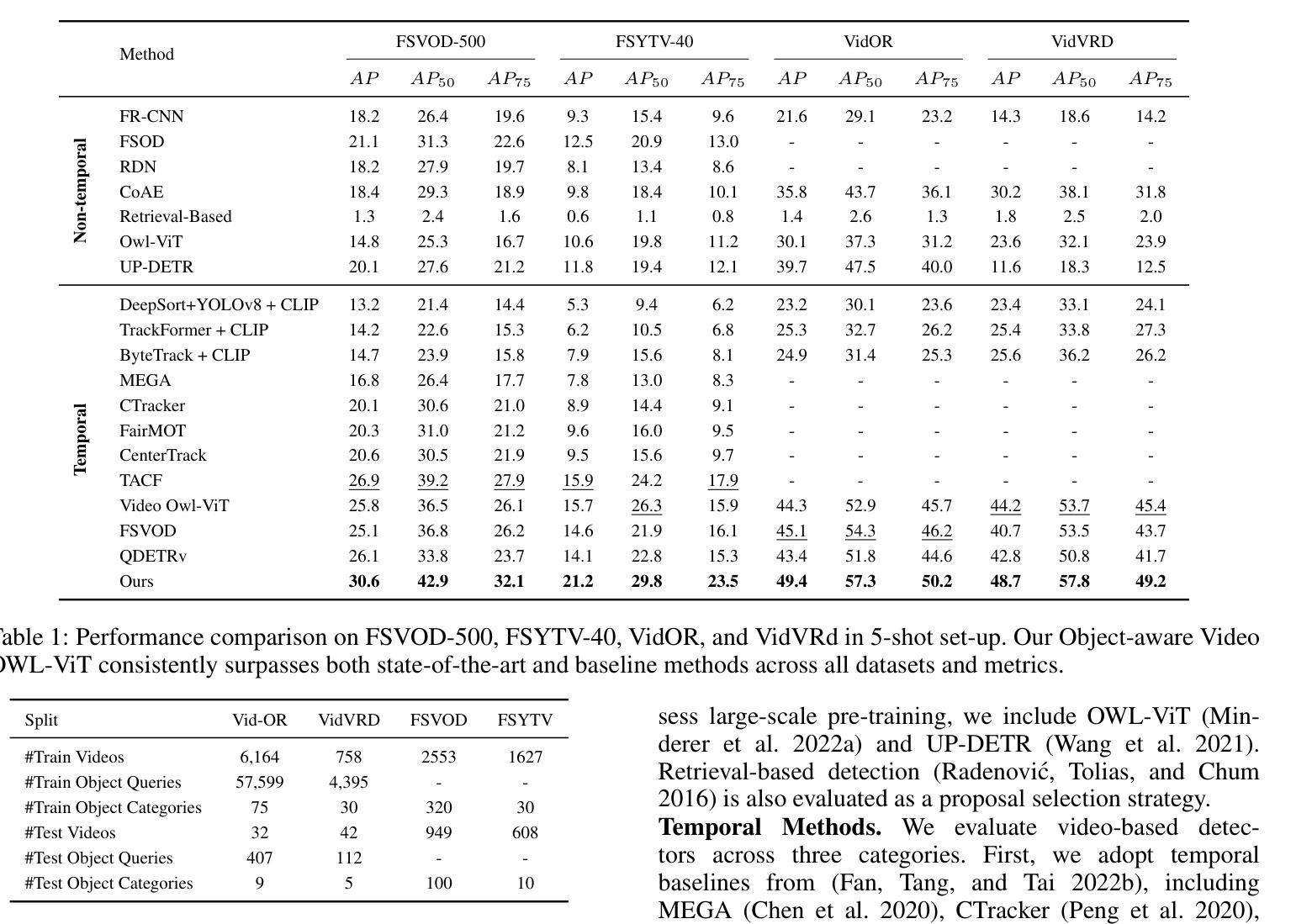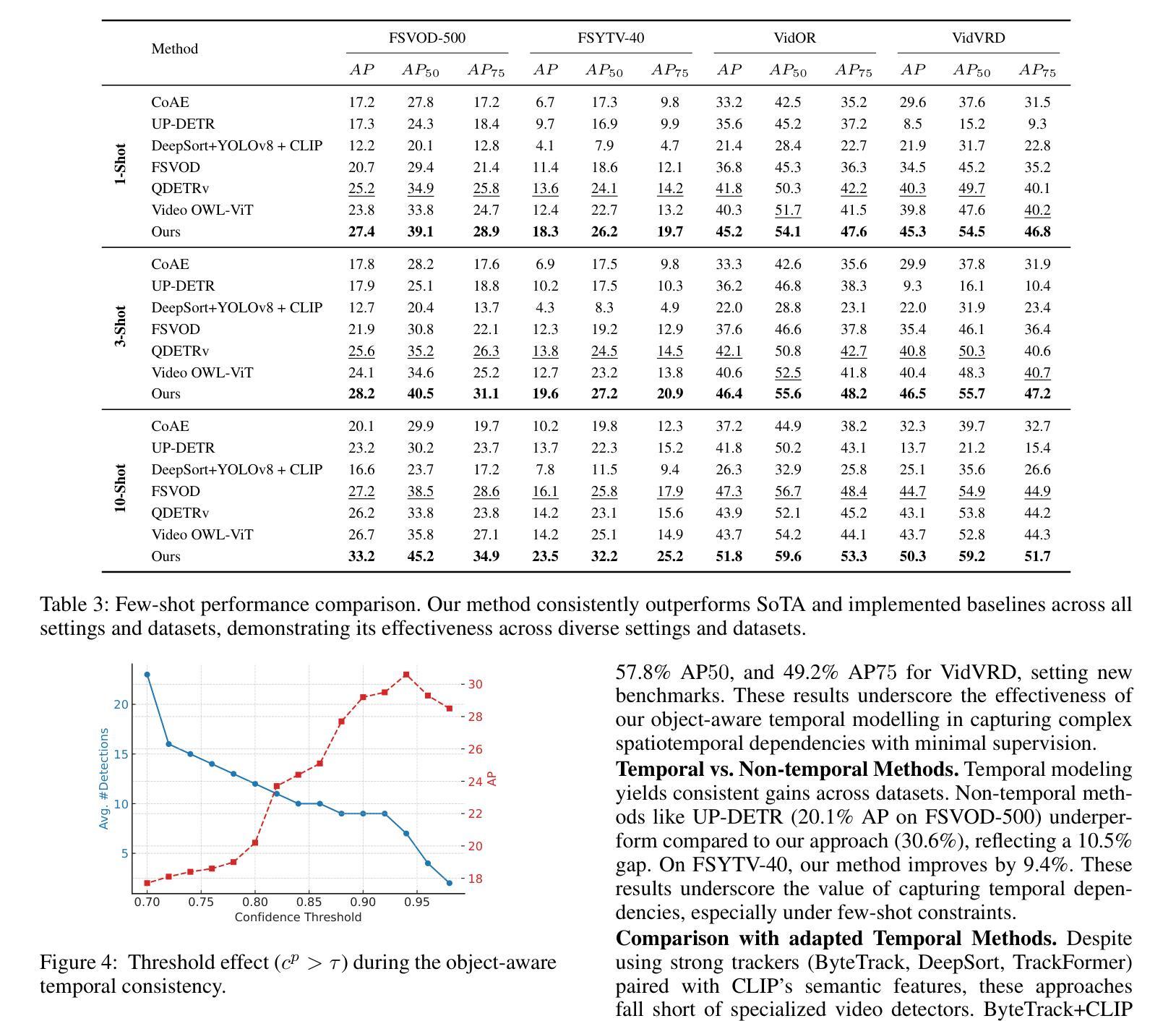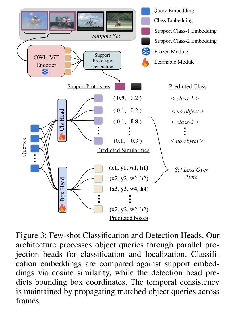 - 利用小样本训练的检测和分类头以及有针对性的特征传播,实现了稳健的时间一致性,无需依赖复杂的区域提案。