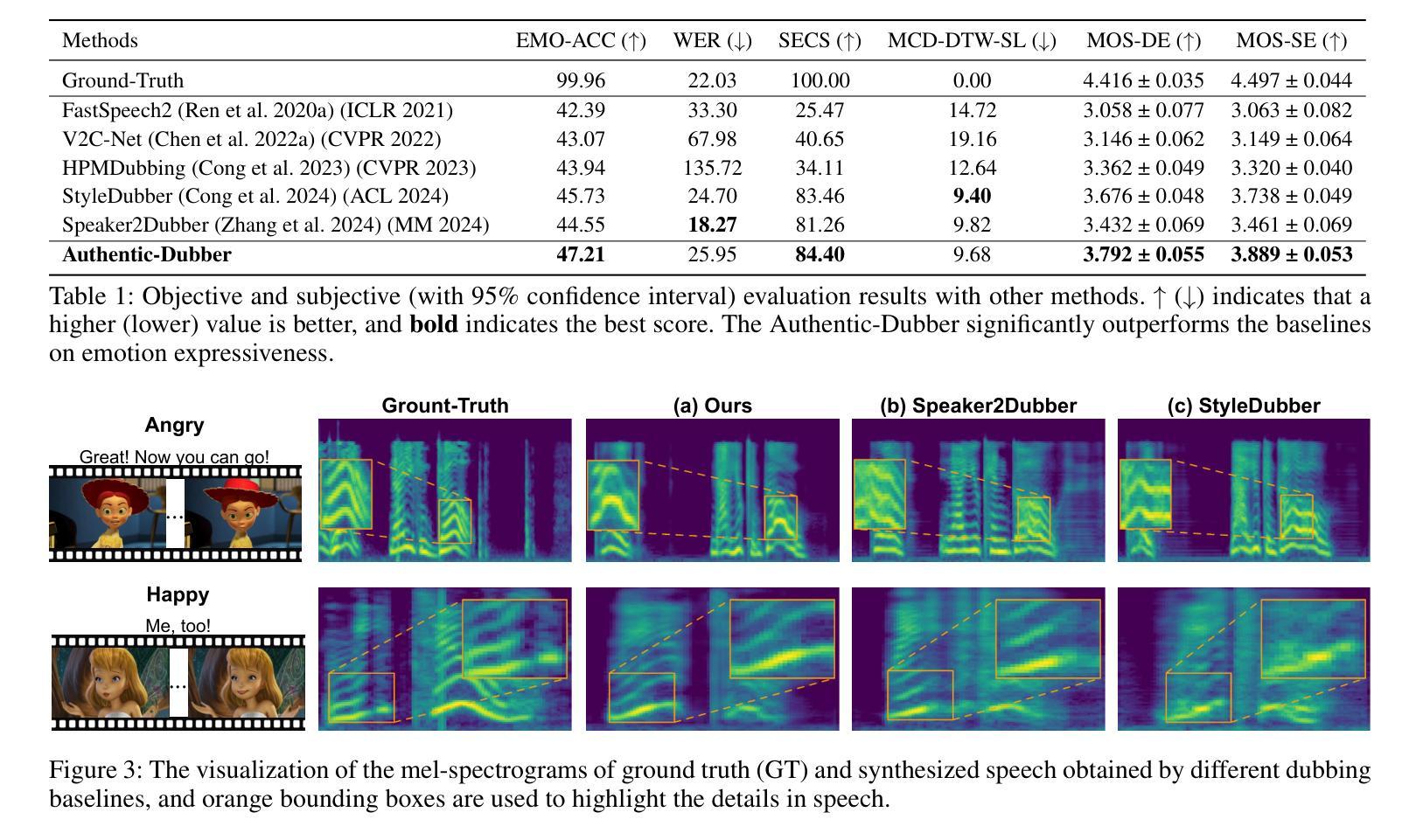 - Authentic-Dubber模型生成生动语音,从给定剧本复制演讲者音色,并确保与无声视频同步。