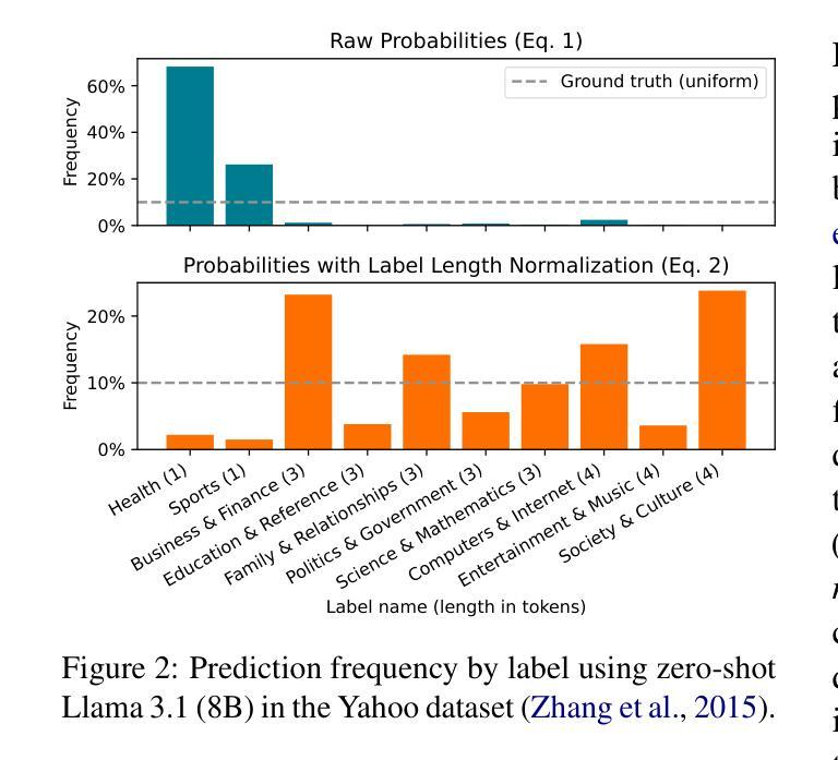 大型语言模型(LLM)是强大的零样本和少样本学习者。然而,在预测一组候选选项时,LLM会受到标签偏见的影响,而现有的校准方法忽视了由多令牌类标签产生的偏见。我们解决了一个我们称为标签长度偏见的问题,即不同长度的标签在标准长度归一化后仍然处理不一致。为了缓解这一问题,我们提出了归一化上下文校准(NCC),这是一种有效的方法,可以在全标签级别对预测进行归一化和校准。NCC在多个数据集和模型上实现了对先前方法的统计学上的显著改进,F1得分提高了高达10%。此外,NCC将偏见缓解扩展到更广泛的任务,如多项选择题回答。我们的分析表明,结合上下文学习,NCC对少样本示例选择不太敏感,需要更少的示例即可实现竞争性能,并产生更可靠的信心估计。这些发现强调了减轻全标签偏见的重要性,以提高基于LLM的方法的性能和稳健性,特别是在类标签自然包含多个令牌的实际应用中。