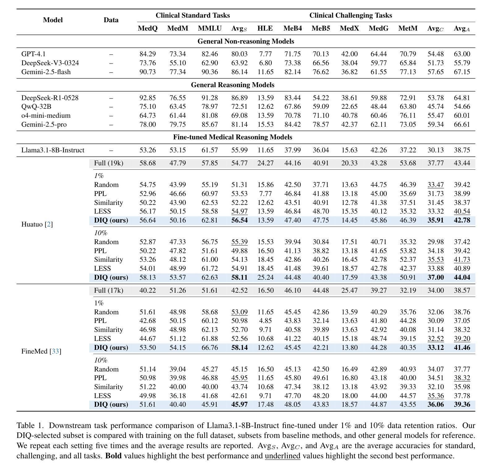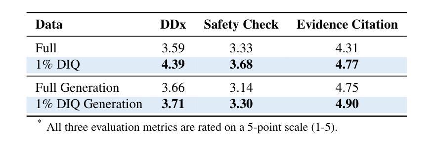 - DIQ选定的子集在医疗推理方面与专家实践更一致。