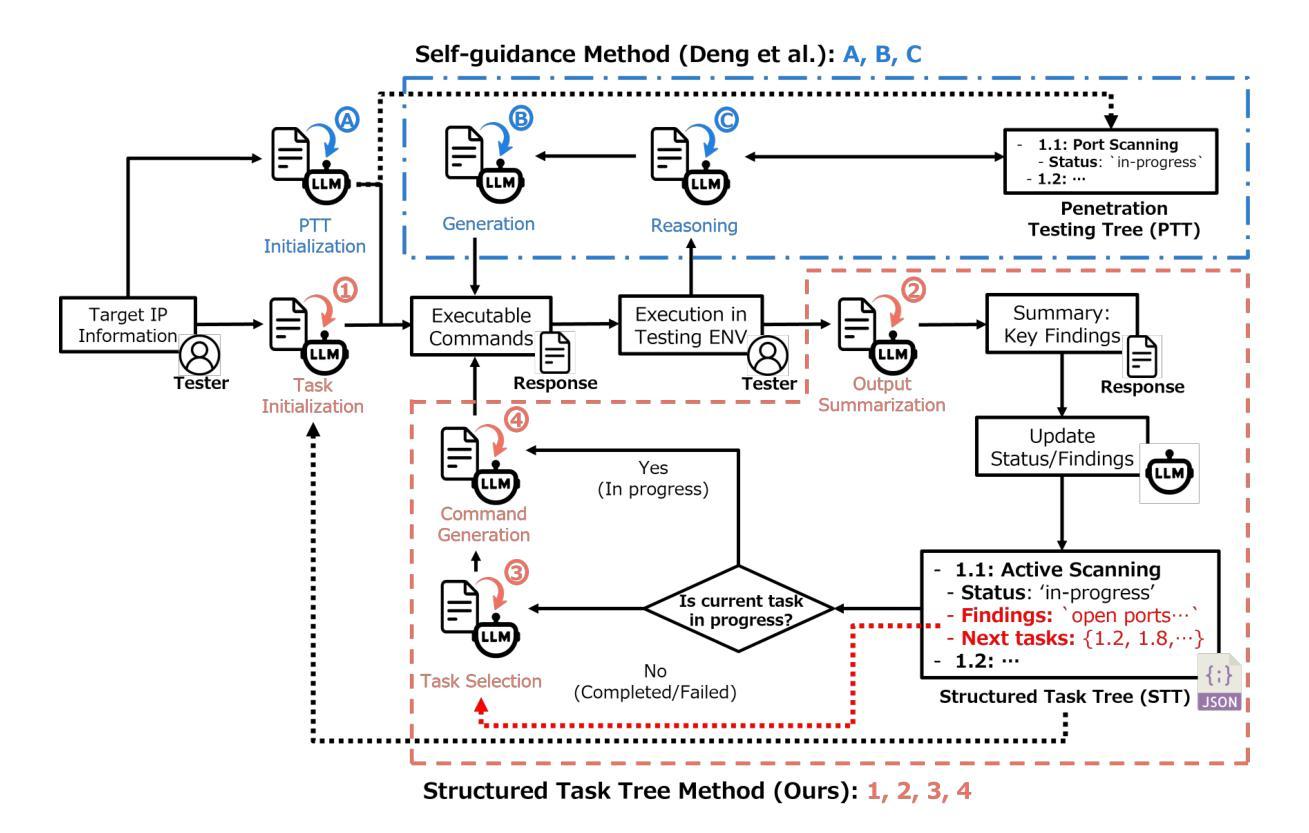 - 当前LLM代理在渗透测试中主要依赖自我引导推理,存在不准确和产生循环响应的问题。