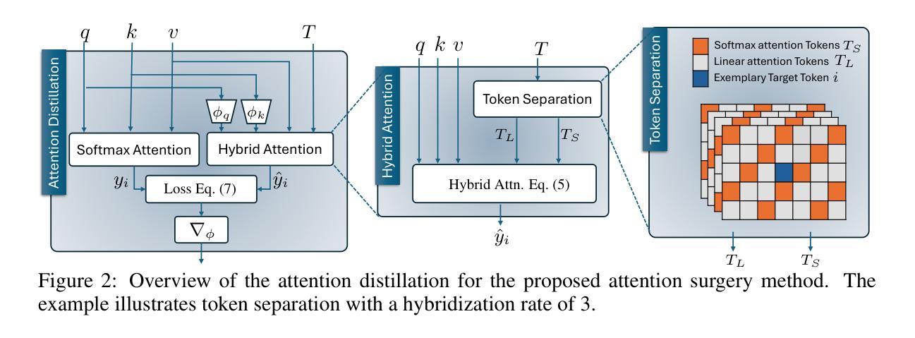 - Attention Surgery框架引入了一种混合注意力机制,结合了softmax和线性注意力令牌,以提高效率。