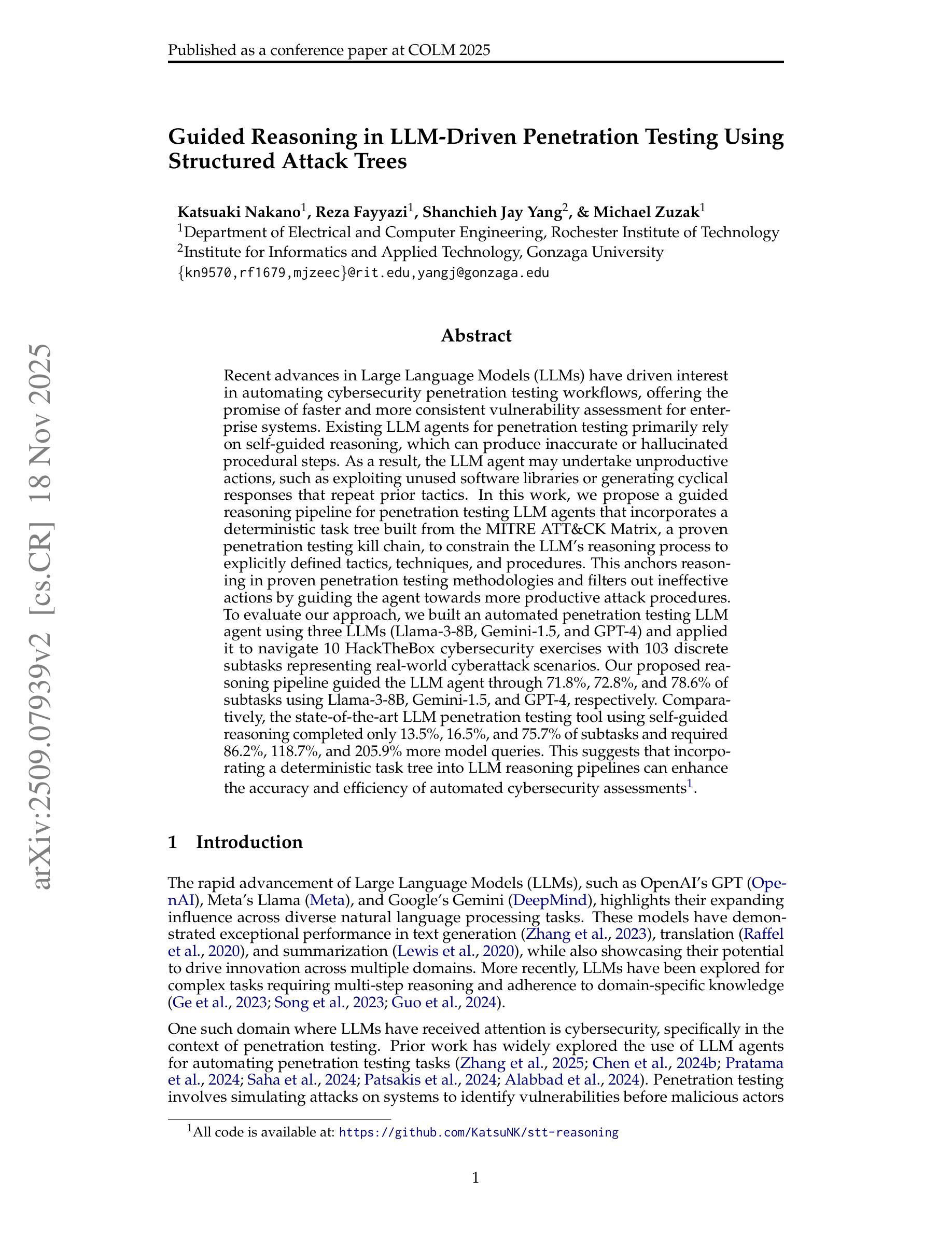 - 与自我引导式LLM渗透测试工具相比,该推理管道在完成任务方面的表现更优。