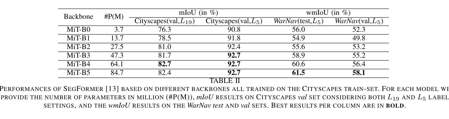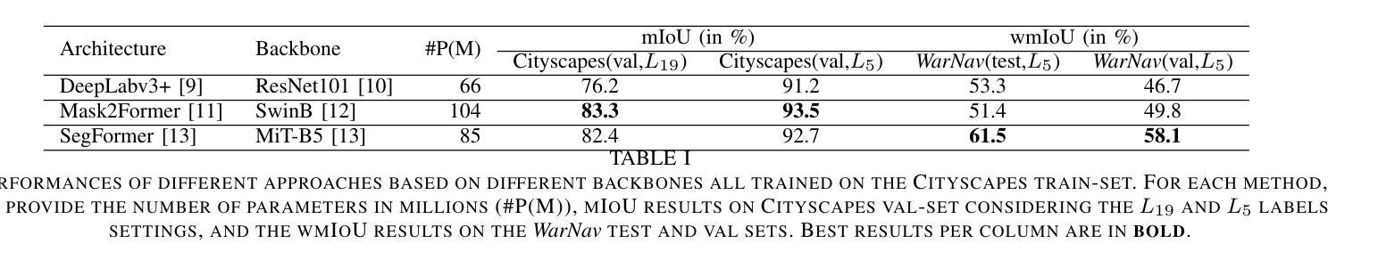 - 报告了使用先进语义分割模型在WarNav上的基线结果,以建立性能参考。