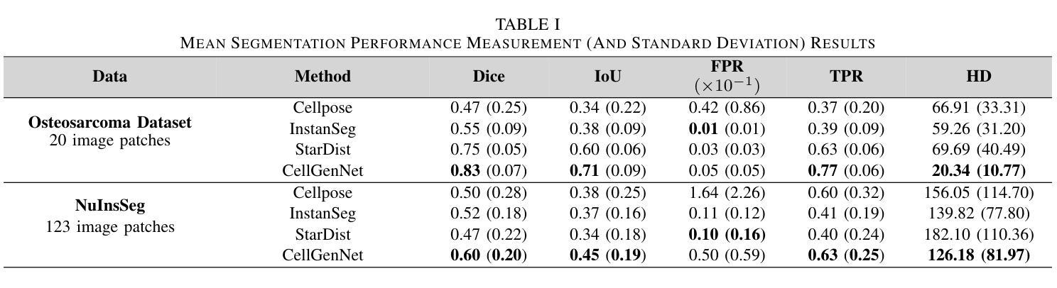 - 实验表明,CellGenNet在多样化的癌症组织WSIs上表现出较高的分割精度和泛化能力。