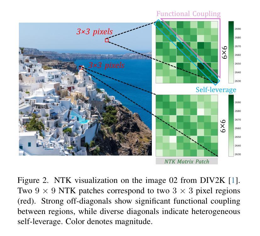隐式神经网络表示(INR)通过多层感知器(MLP)对连续信号进行参数化,为图像、音频和3D重建等任务提供紧凑且分辨率独立的建模。然而,拟合高分辨率信号需要在数百万个坐标上进行优化,计算成本高昂。为解决此问题,我们提出了基于神经元切线核(NTK)引导的隐式神经网络教学(NINT)方法,通过动态选择最大化全局功能更新的坐标来加速训练。NINT通过结合NTK和损失梯度的范数来评估样本,同时考虑拟合误差和异质杠杆(自我影响和跨坐标耦合)。这种双重考量使得其相比现有方法收敛更快。通过大量实验,我们证明了NINT在保持或提高表示质量的同时,将训练时间减少近一半,成为基于采样的最新策略中最先进的加速方法。