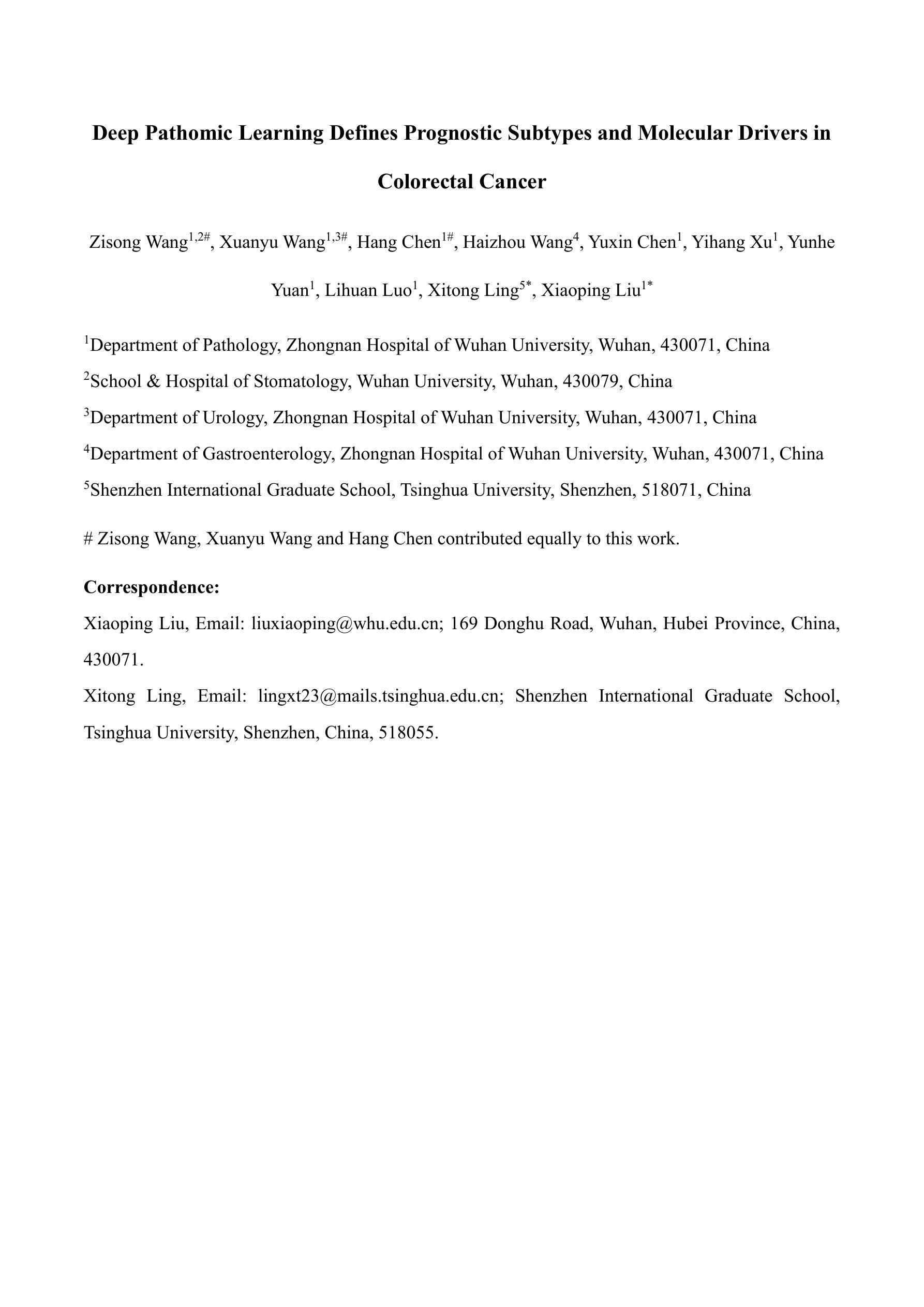 Authors:Zisong Wang, Xuanyu Wang, Hang Chen, Haizhou Wang, Yuxin Chen, Yihang Xu, Yunhe Yuan, Lihuan Luo, Xitong Ling, Xiaoping Liu