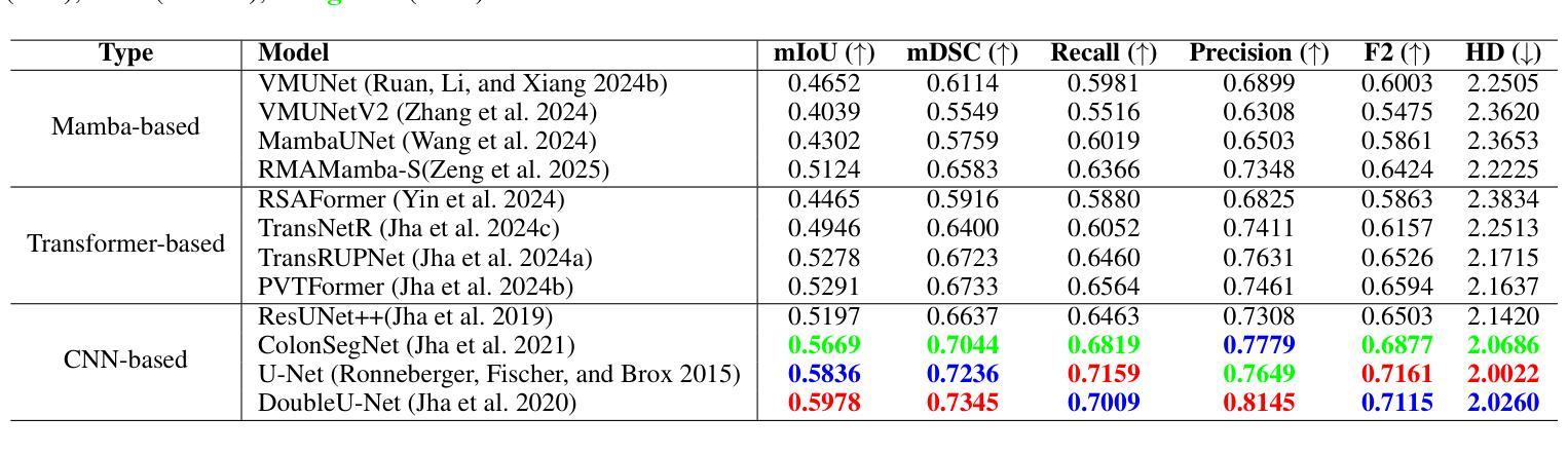 - Mamba架构在某些性能指标上未能超越更简单的CNN架构。