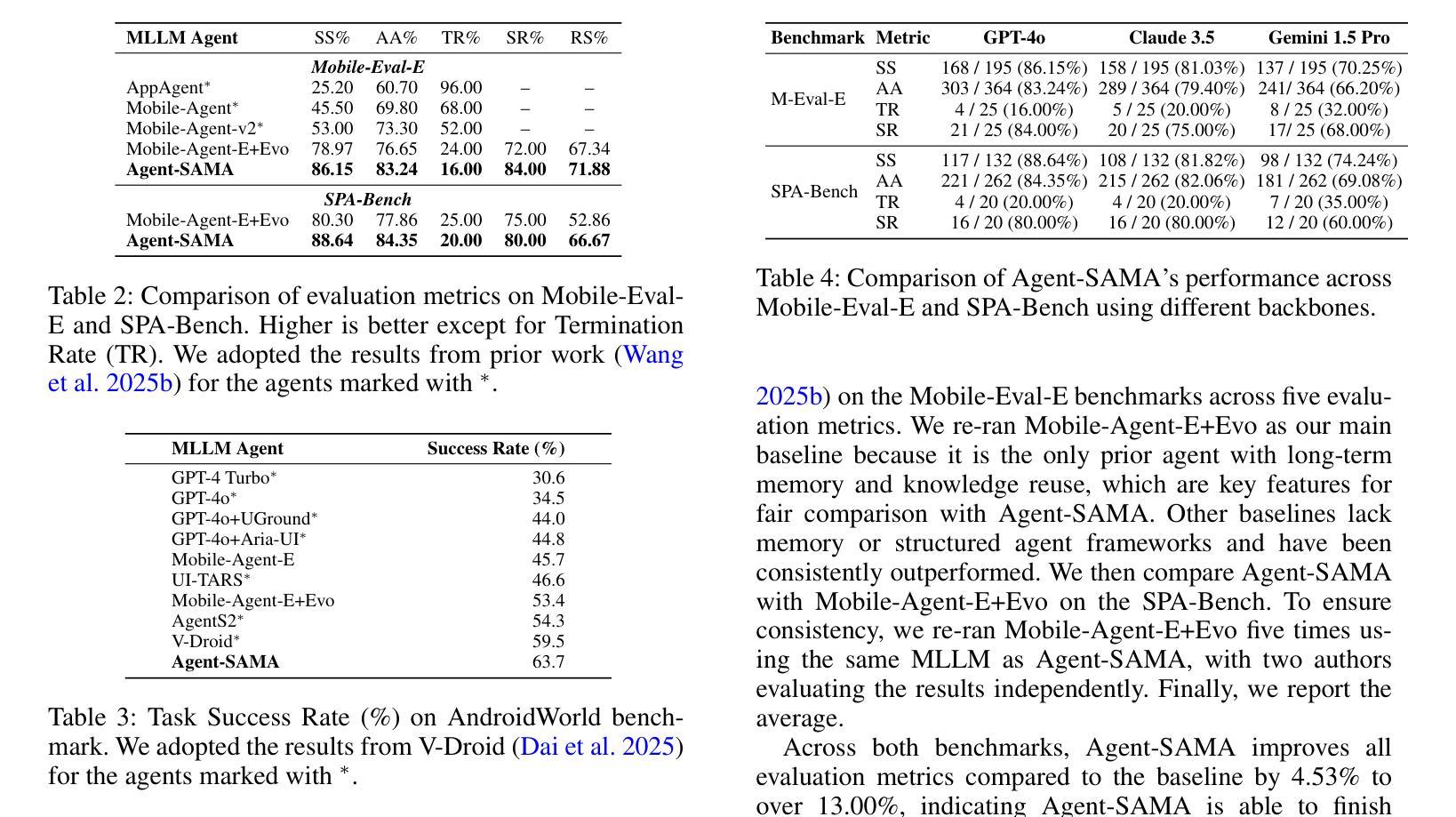 - 与现有方法相比,Agent-SAMA在任务成功率和恢复率上有所提升。