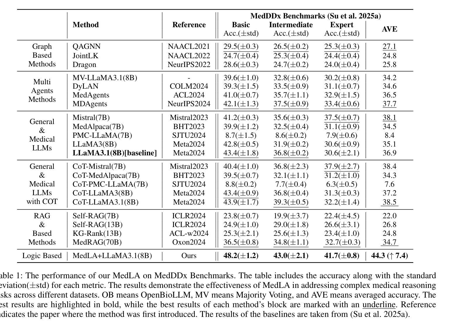 - MedLA在基准测试中表现优异,优于静态角色系统和单智能体基线。