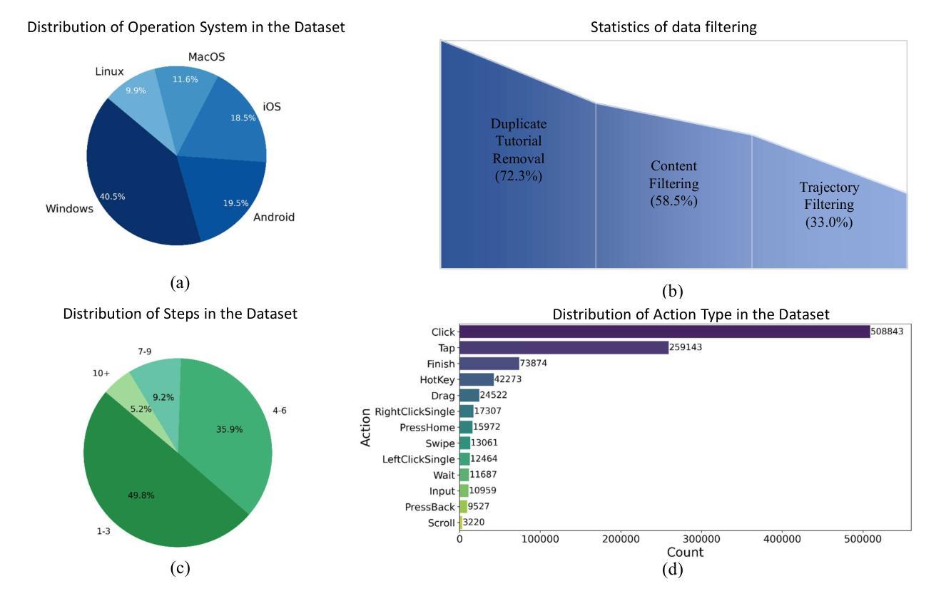 - TongUI通过爬取和加工在线GUI教程,创建了GUI-Net数据集,包含143K轨迹数据,覆盖五个操作系统和超过200个应用程序。