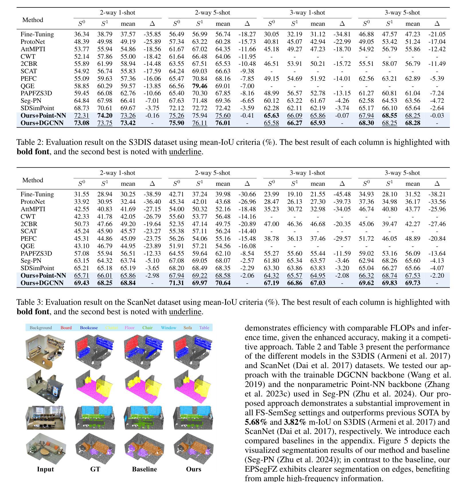 - EPSegFZ在S3DIS和ScanNet基准测试上表现优异,相比现有技术有显著提升。