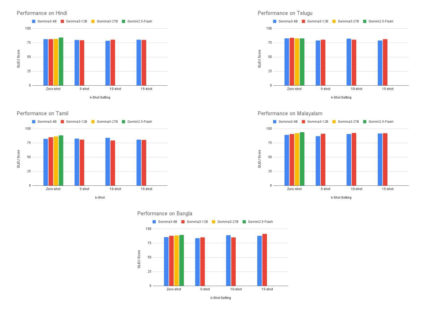- 在泰卢固语和印地语中分别排名第4和第2,GLEU评分较高。