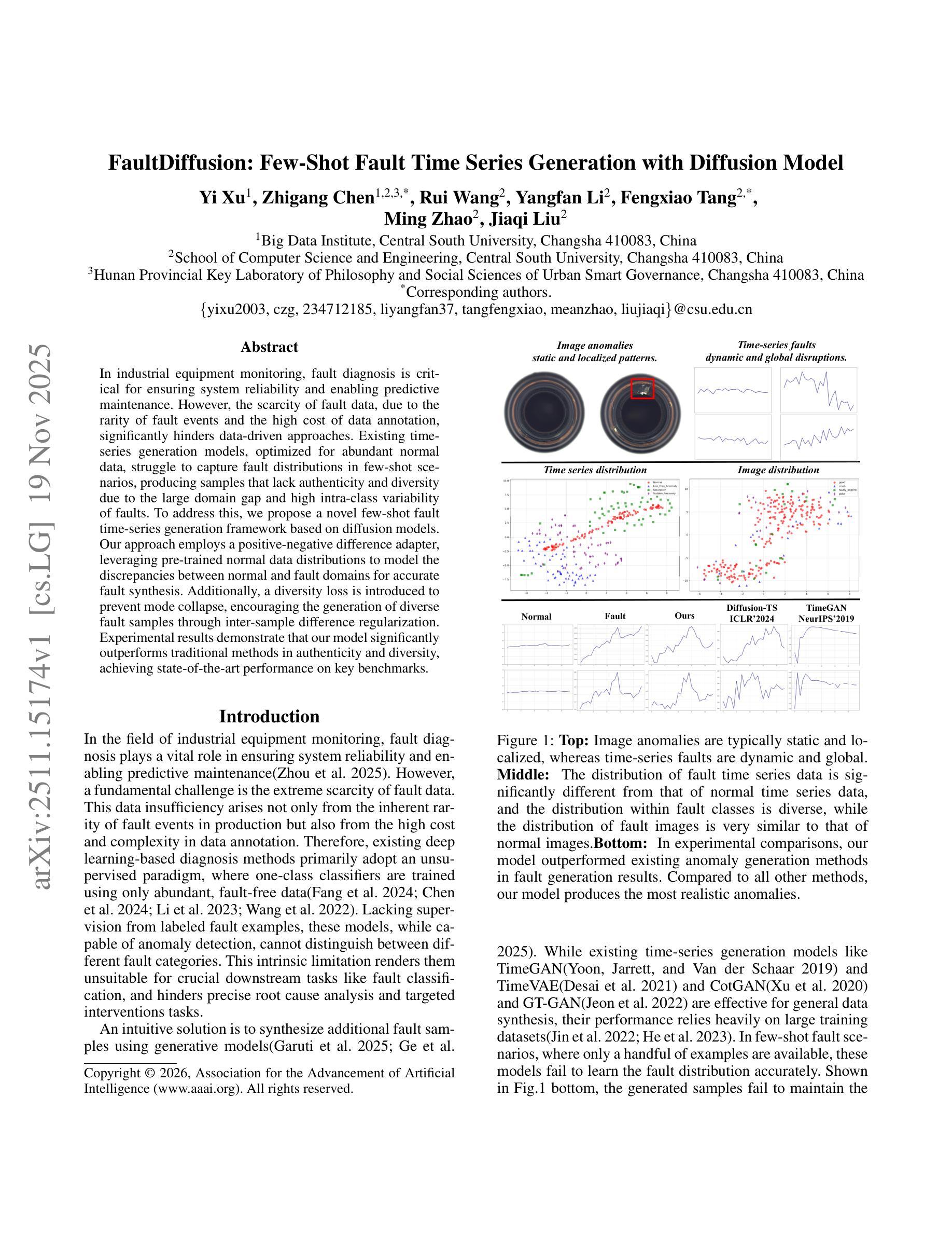 - 引入多样性损失来防止模式崩溃并鼓励生成多样化故障样本。