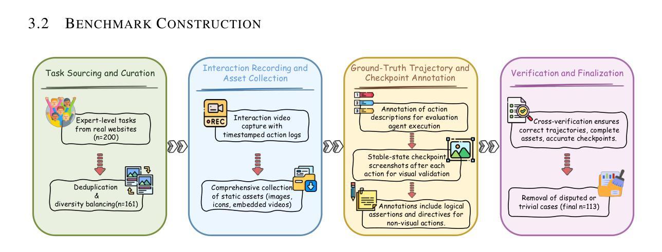 - 它包含来自真实世界网站的多样化任务,涵盖复杂的交互、视觉风格和领域。