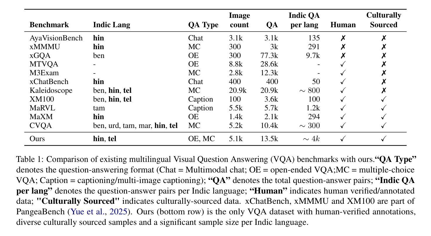 - 印度拥有近15亿人口和超过120种主要语言,对多语言Vision-Language Models(VLMs)的评估至关重要。然而,当前的多语言VLM评估存在四个主要局限性。