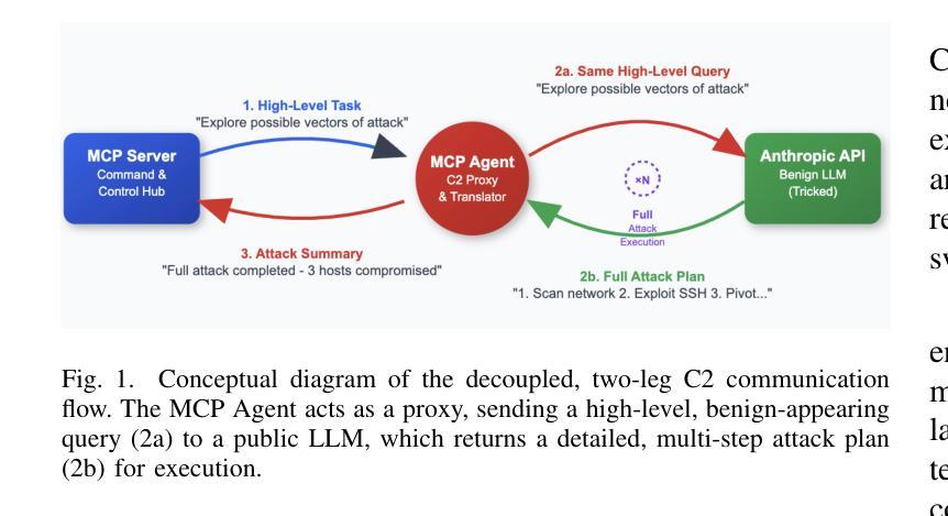 - 现有方法的通用性与专业性之间的权衡是当前挑战之一。这些方法往往在实践中暴露出缺陷,如幻觉和上下文限制问题。对此架构采用了新型命令与控制架构和模型上下文协议来改进性能。这些协议可解决现有的通用性和专业性问题,并在仿真环境中获得显著效果。此外,它们还有助于消除关键主机和网络痕迹,提高隐蔽性。这些协议对于实现自主决策和高效执行至关重要。同时需要关注伦理问题以确保其正当使用。