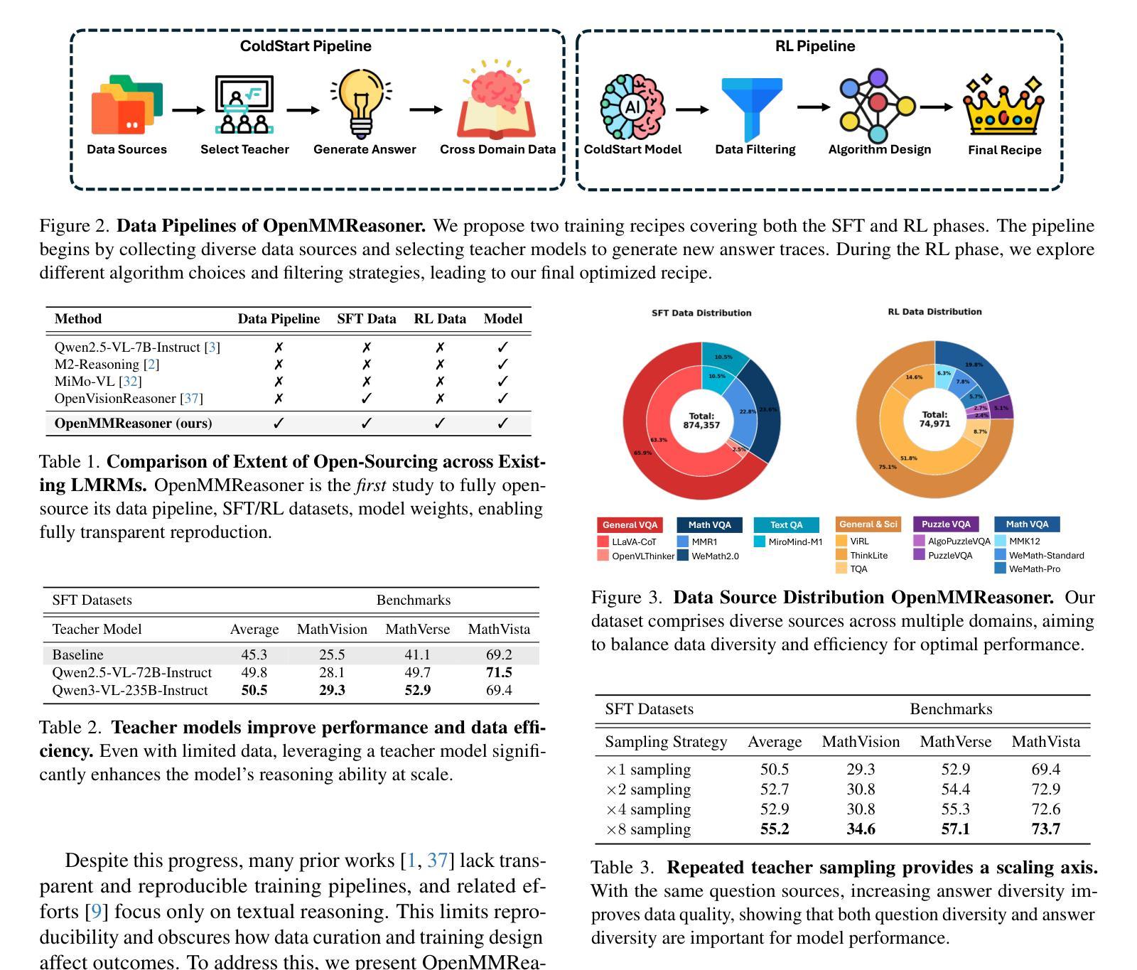 - OpenMMReasoner是一个透明的多模态推理方案,包括监督微调(SFT)和强化学习(RL)两个阶段。