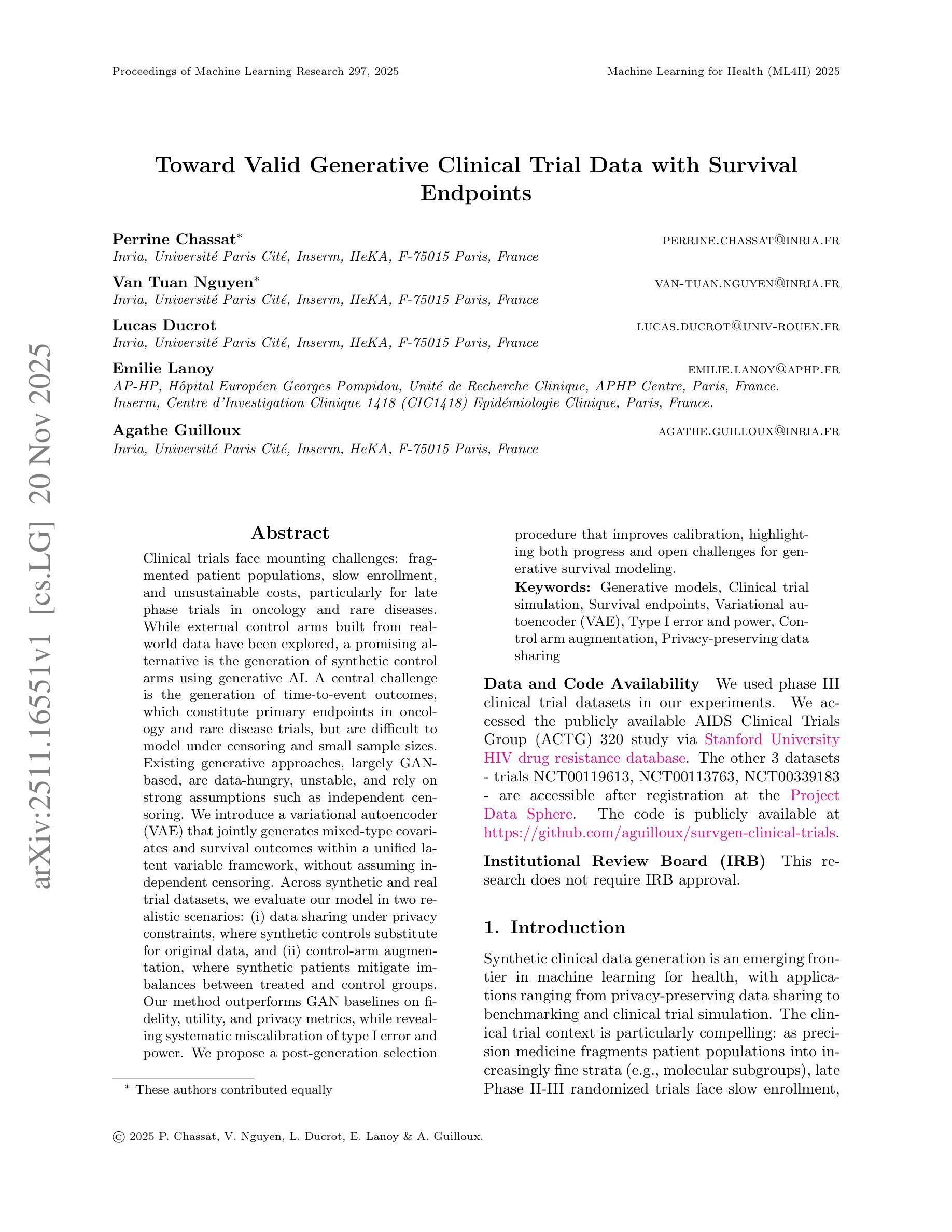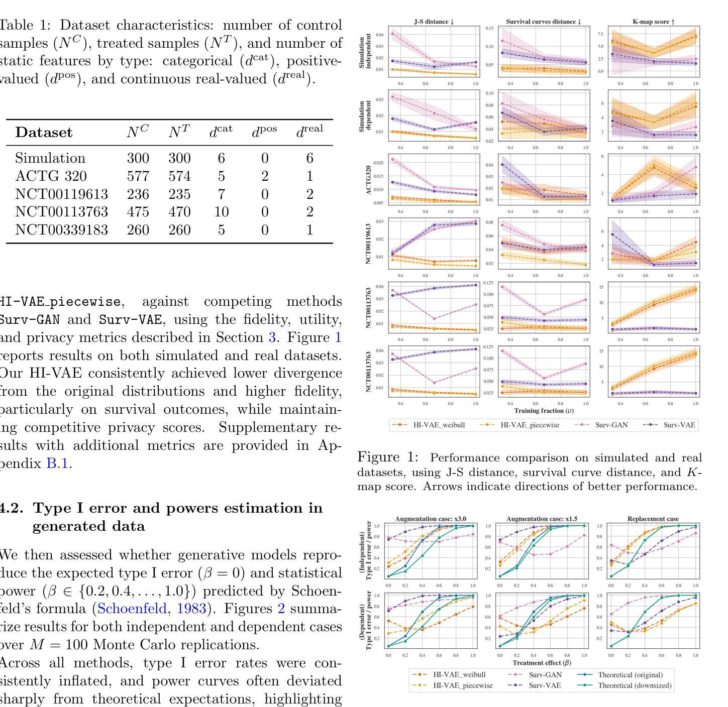 - 在合成数据和真实试验数据集上的评估显示,VAE方法在保真度、实用性和隐私指标上优于基于GAN的方法。