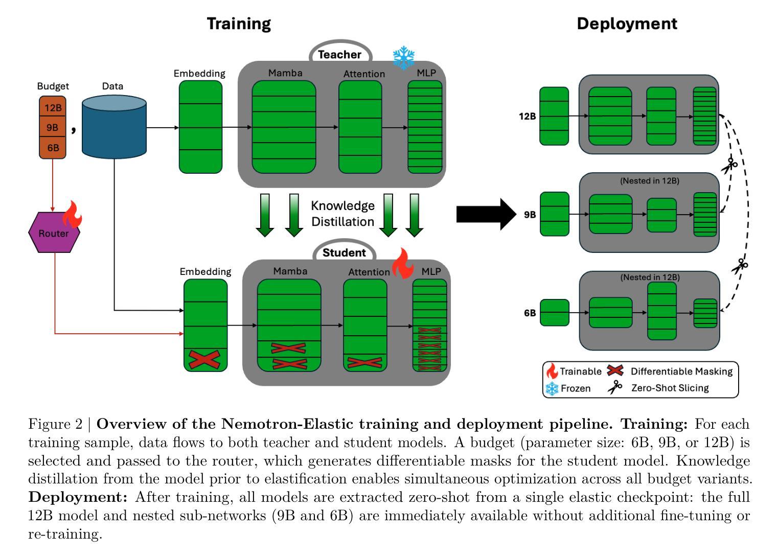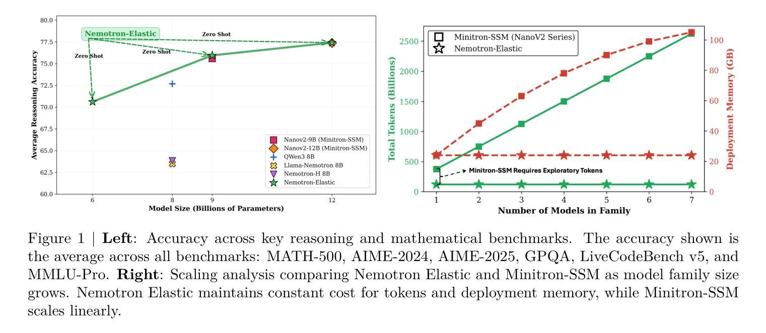 - 构建面向推理的大型语言模型(LLMs)的Nemotron Elastic框架可以实现多尺度、多部署目标的语言模型训练。