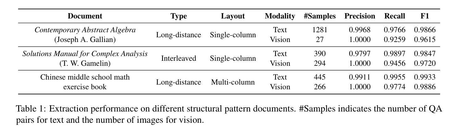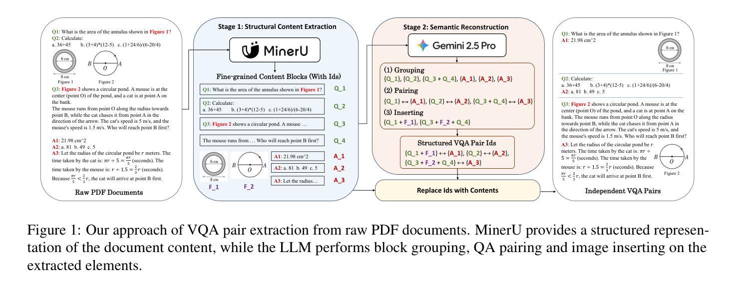 - 提出了一种自动化管道,结合布局OCR和LLM语义解析,从教育文档中提取QA和VQA对。