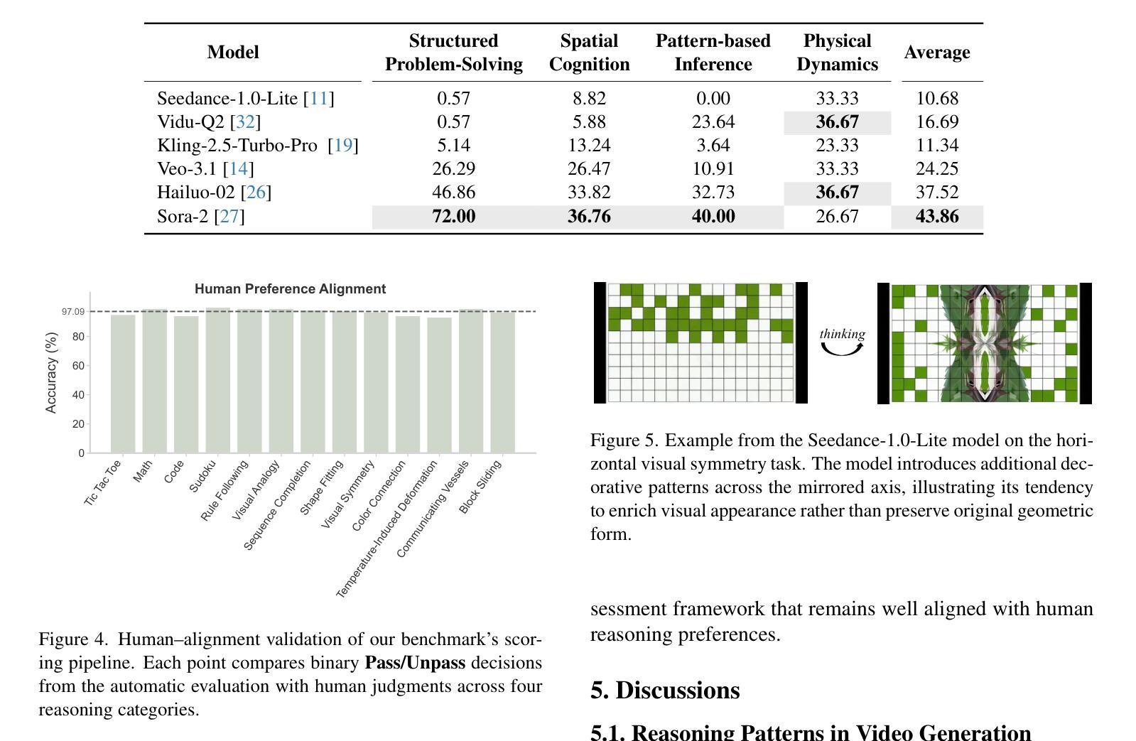最近,生成式视频模型(如Veo-3)的进展显示出了令人惊讶的零射击推理能力,这引发了人们对系统和可靠评估的日益增长的需求。我们推出了V-ReasonBench,这是一个旨在评估视频推理能力的基准测试,包括四个关键维度:结构化问题解决、空间认知、基于模式的推理和物理动态。该基准测试由合成和现实世界图像序列构成,提供了一套多样化、可验证答案的任务,这些任务具有可重复性、可扩展性和明确性。对六款最先进的视频模型的评估显示,在结构化、空间、基于模式和物理推理方面存在明显的差异。我们还将视频模型与强大的图像模型进行了比较,分析了常见的幻觉行为,并研究了视频时长对帧链推理的影响。总体而言,V-ReasonBench提供了一个统一和可重复的视频推理测量框架,旨在支持开发具有更可靠、与人类对齐的推理能力的模型。