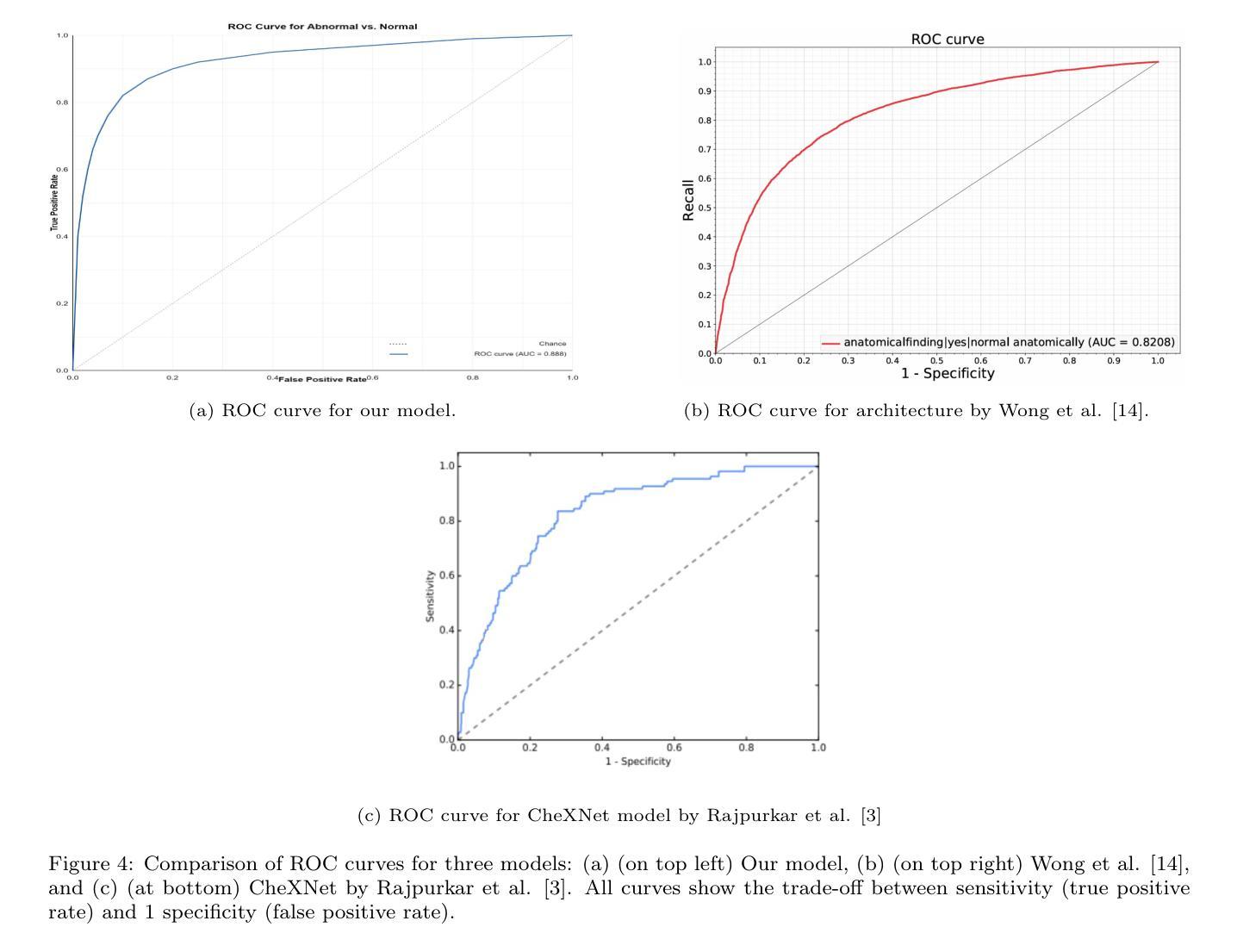 - 与已建立的架构(如CheXNet)相比,该模型表现出相当的性能。