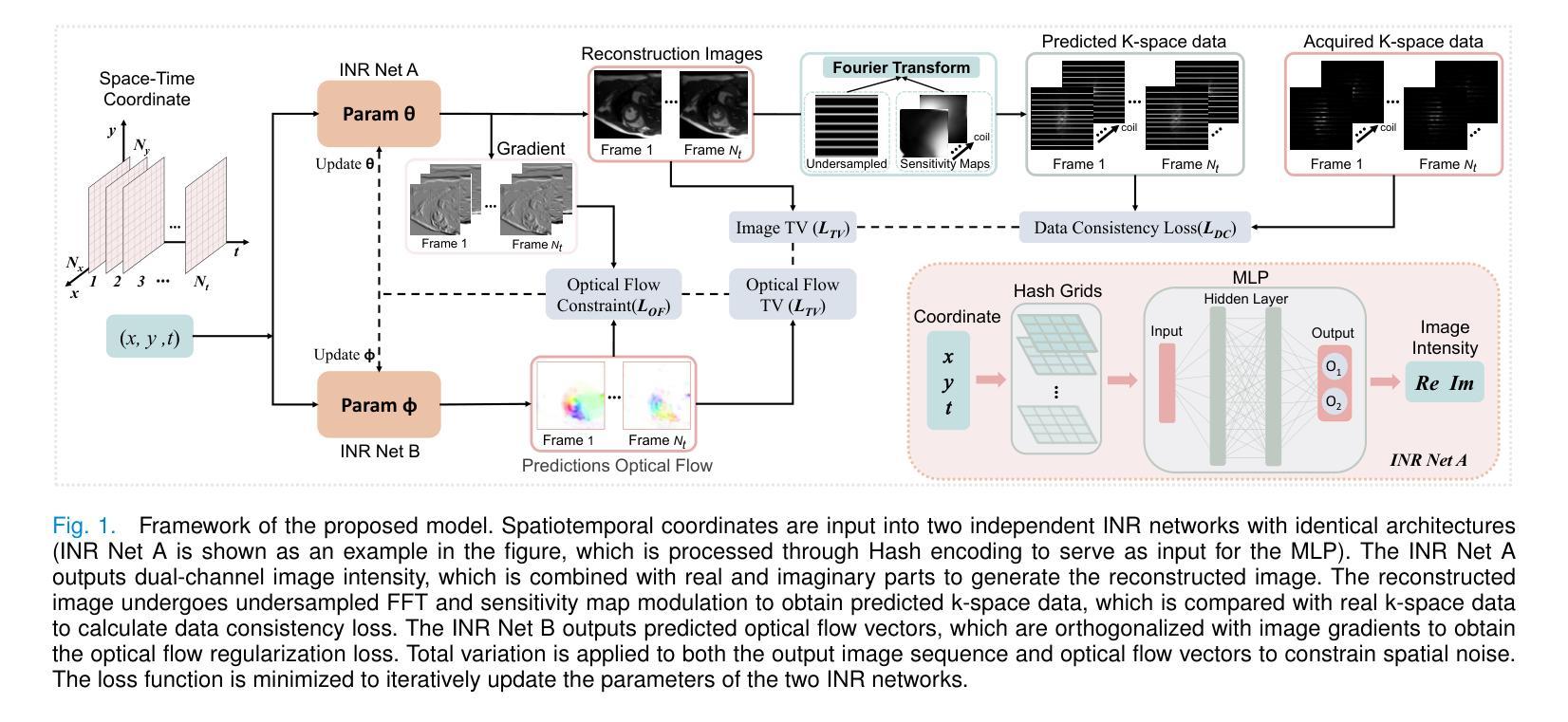 - 隐神经表示(INR)框架被用于动态磁共振成像(dMRI)的重建。
