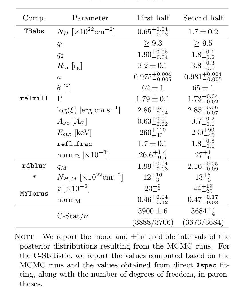 - 通过建模,得出黑洞的自旋参数和內吸积盘的倾角。