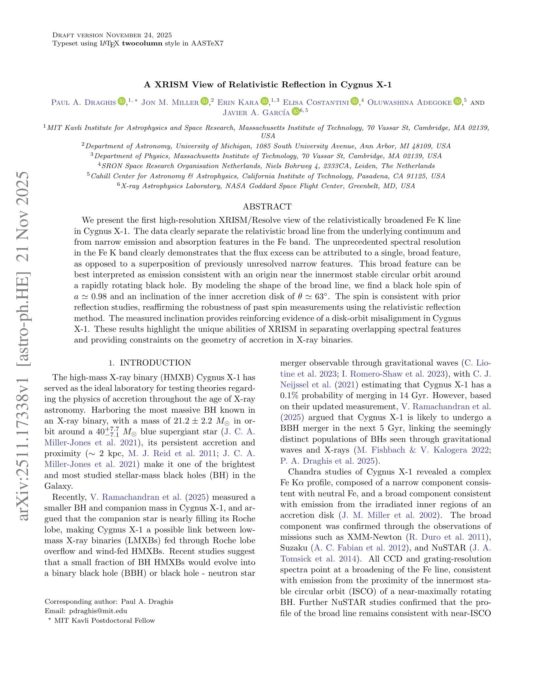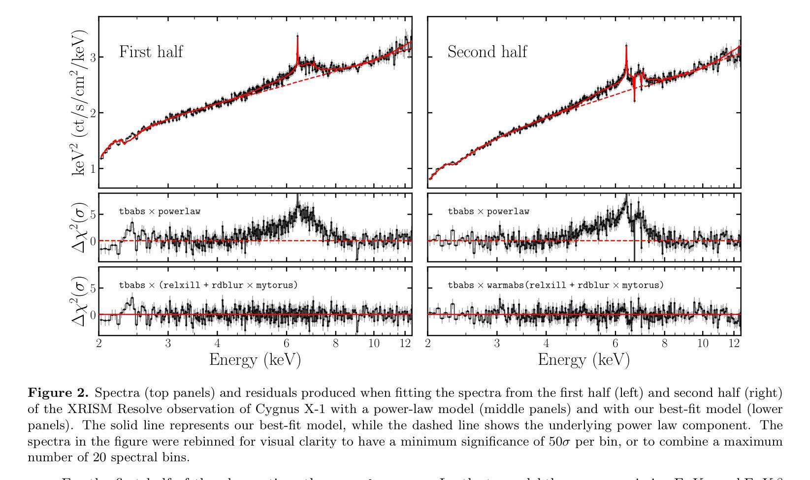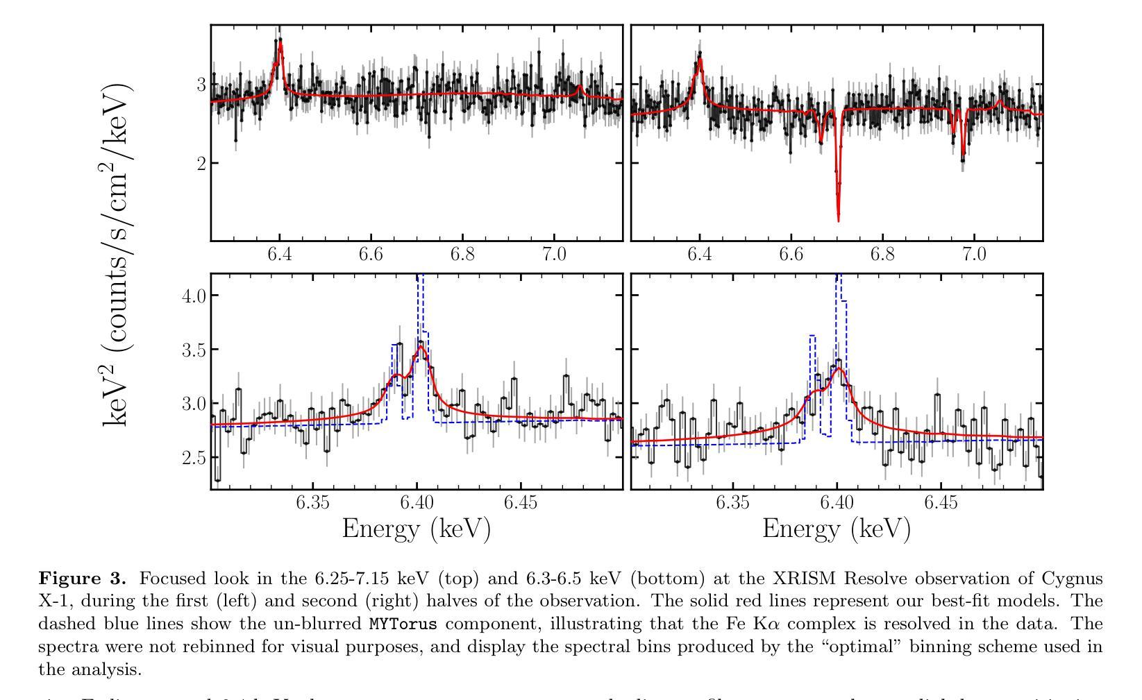 - 高分辨率XRISM/Resolve视图展示了Cygnus X-1中相对论效应下的Fe K线特征。