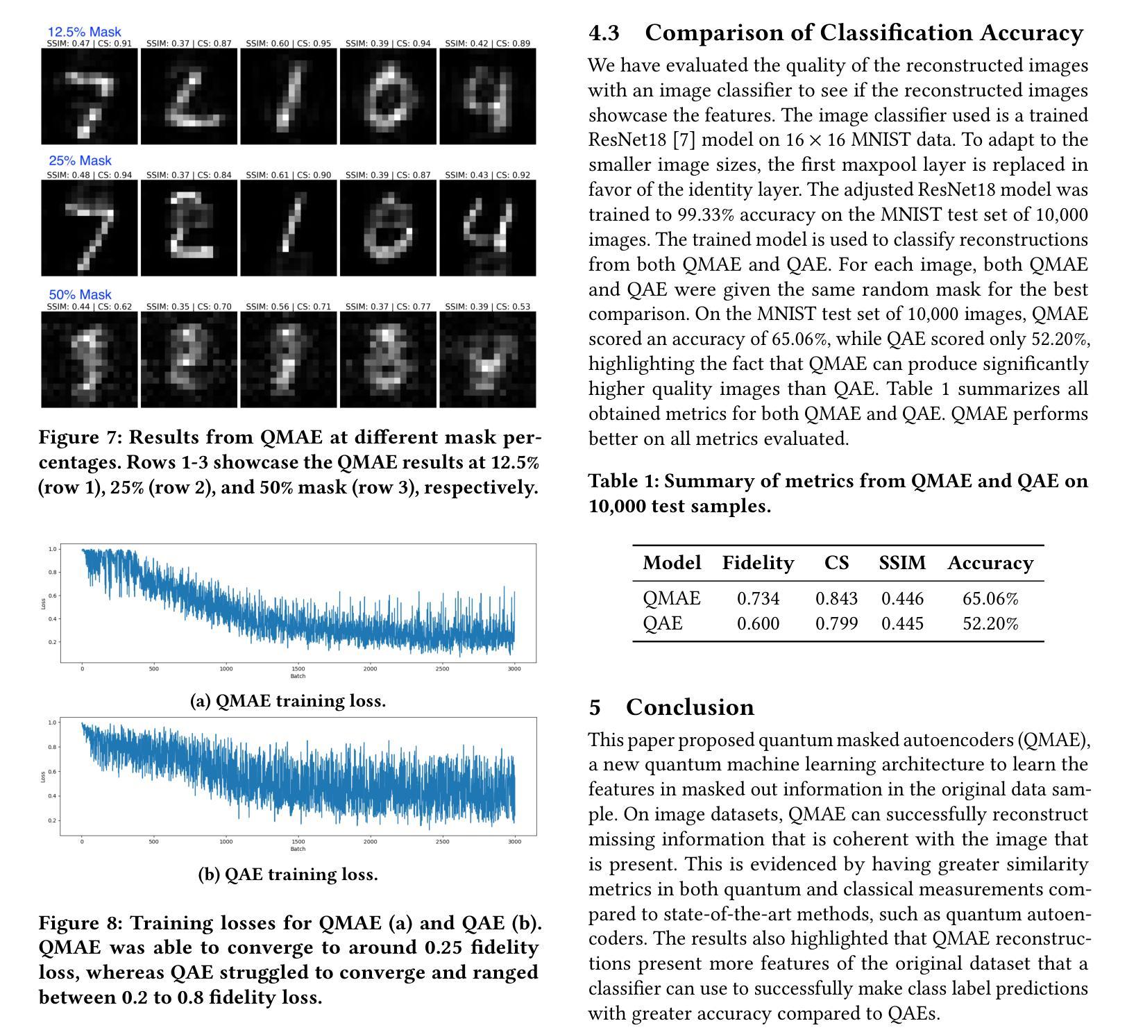 - 量子掩码自编码器(QMAE)结合了量子计算和量子自编码器的优点。