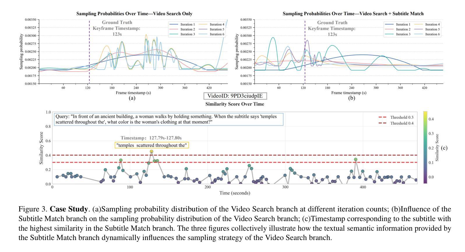 多模态大型语言模型(MLLMs)在视觉语言任务中表现出卓越的性能,然而它们在处理长视频时受到输入上下文长度和计算成本高的限制。因此,稀疏帧采样成为必要的预处理步骤,采样帧的质量直接影响下游性能。现有的关键帧搜索算法在效率和采样帧质量之间取得平衡,但过度依赖视觉模式。这使得它们难以适应文本相关任务,并且经常导致检索结果与核心语义内容偏离。为了解决这个问题,我们提出了视觉字幕集成(VSI)多模态关键帧检索框架。它采用双分支协同检索方法,结合视频搜索和字幕匹配,融合互补的视觉和文本信息,实现精确定位。在LongVideoBench和VideoMME上的实验表明,VSI在关键帧检索方面达到了最先进的准确性,同时在文本相关任务上表现出突破性的性能,并在其他任务中表现出强大的泛化能力。