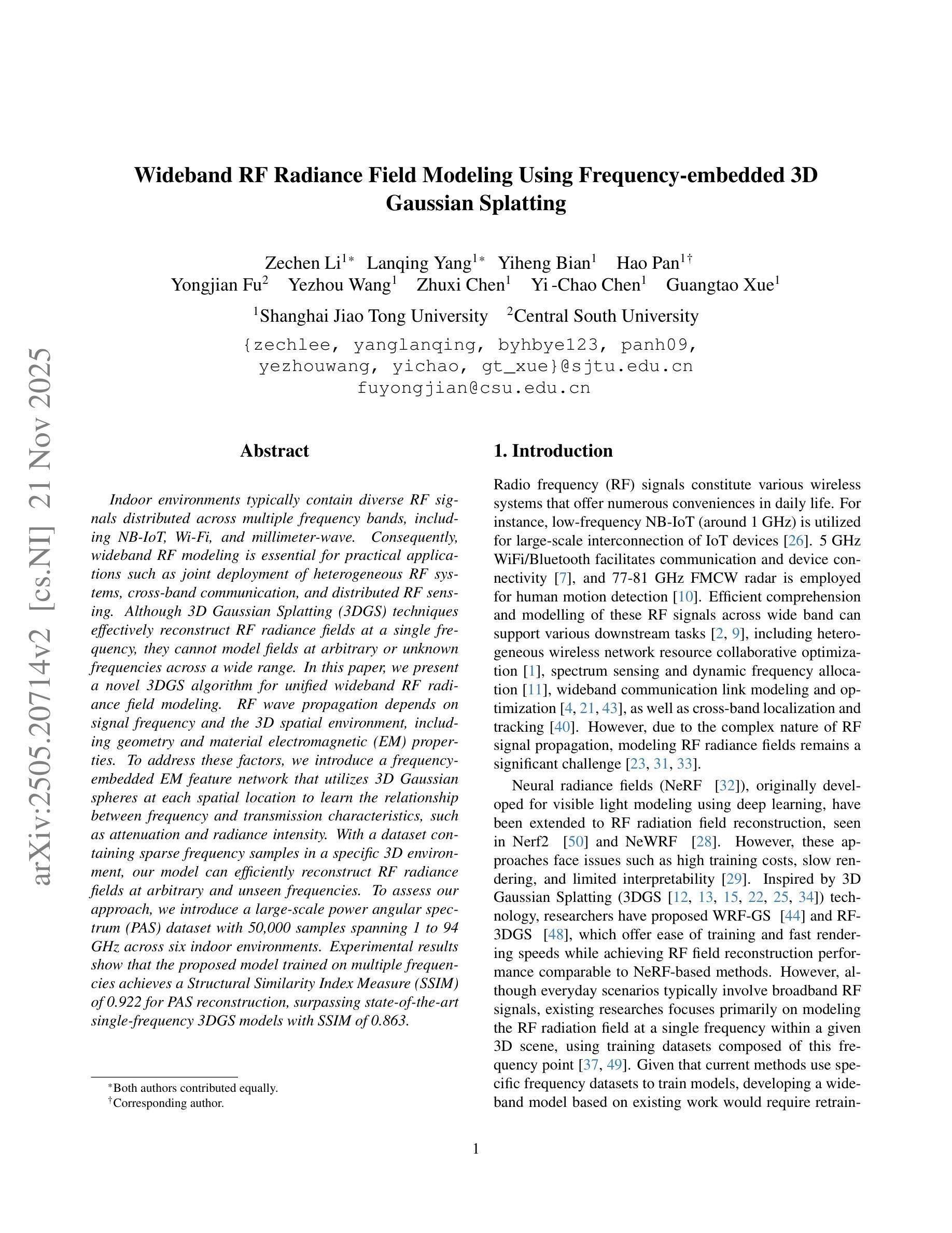 - 引入了一种新型的3DGS算法,用于统一的宽频RF辐射场建模。