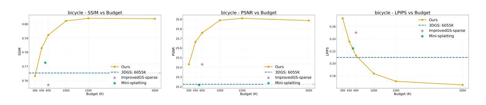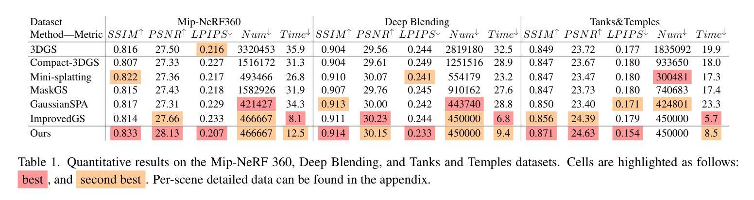 - 优化梯度由最大化渲染质量的目标驱动,自主决定保留或修剪的高斯。