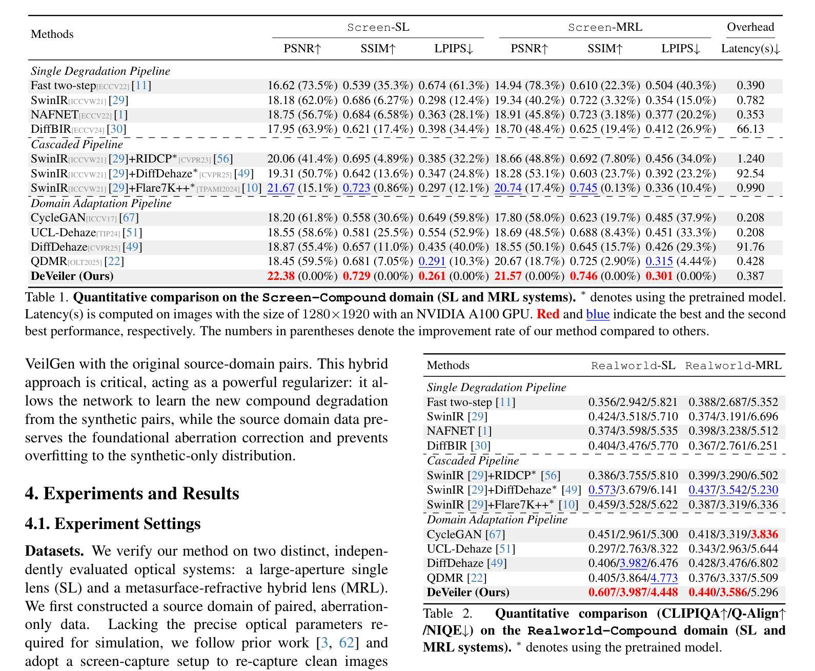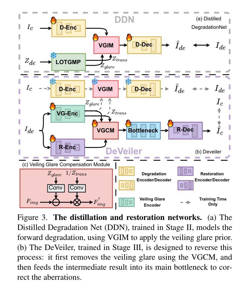- 稳定扩散(SD)基于先验知识的VeilGen,能生成带有真实复合退化(光学畸变和遮蔽眩光)的配对数据集。