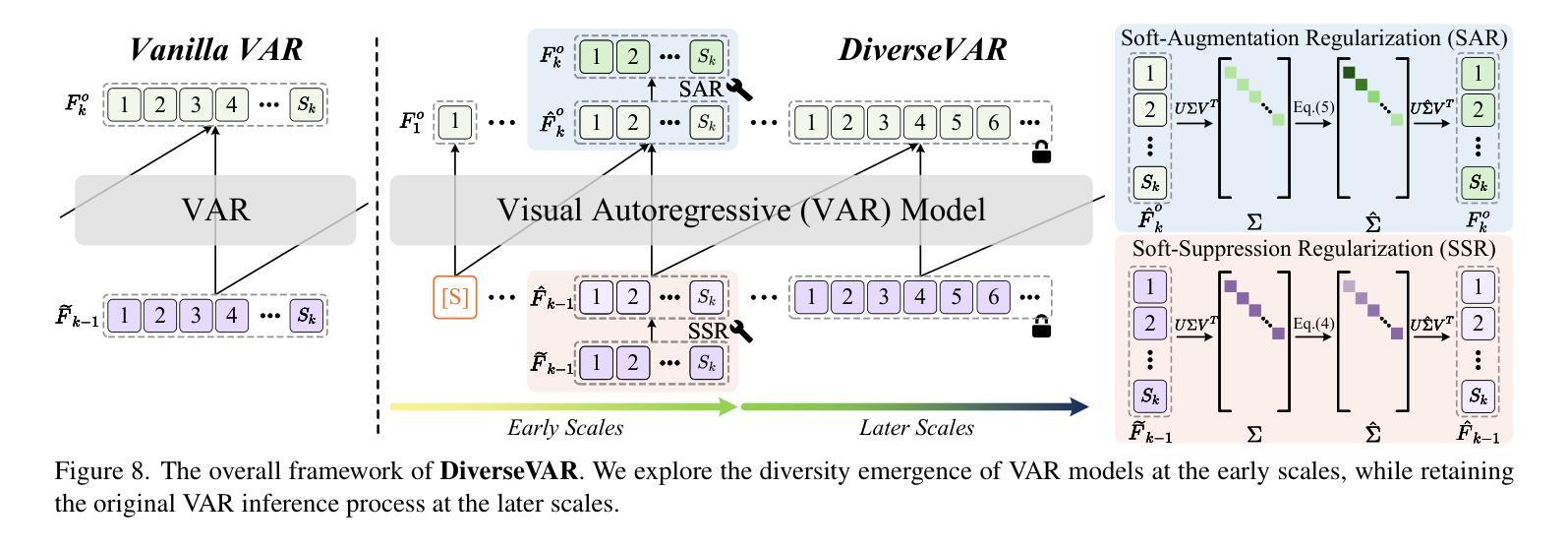 - DiverseVAR模型旨在恢复VAR模型的生成多样性,无需额外训练。