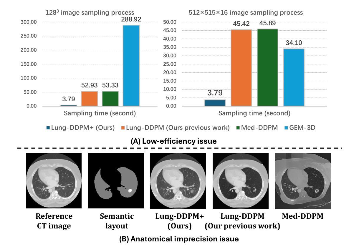 - 与前代模型相比,Lung-DDPM+在效率和质量方面有明显提升。