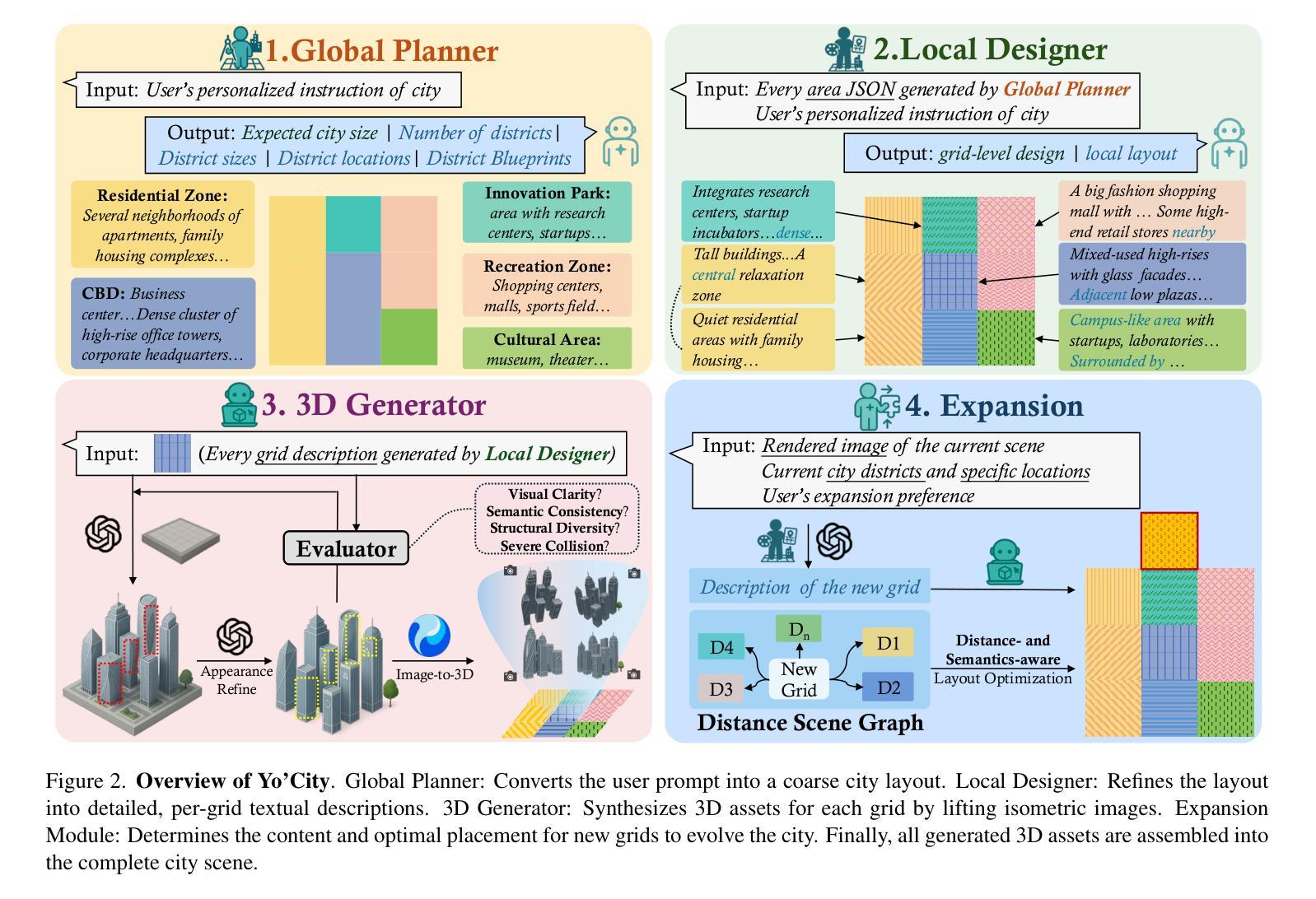 - Yo’City是一个新型代理框架,用于用户自定义和无限扩展的3D城市生成。