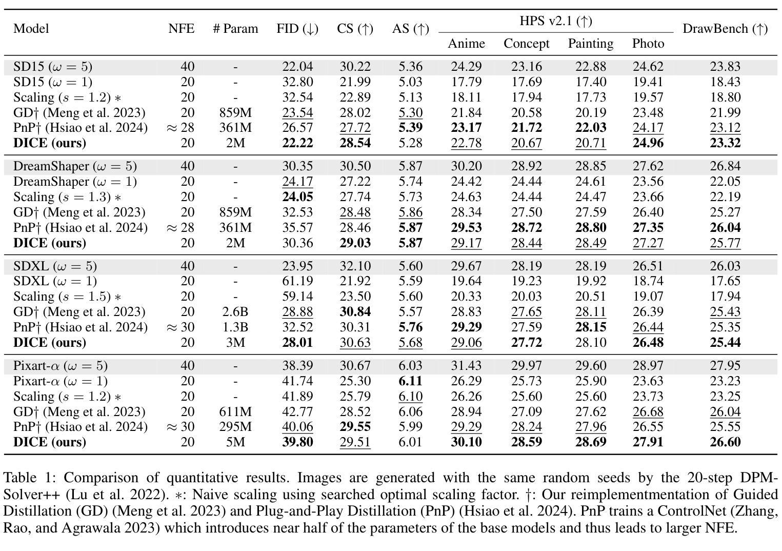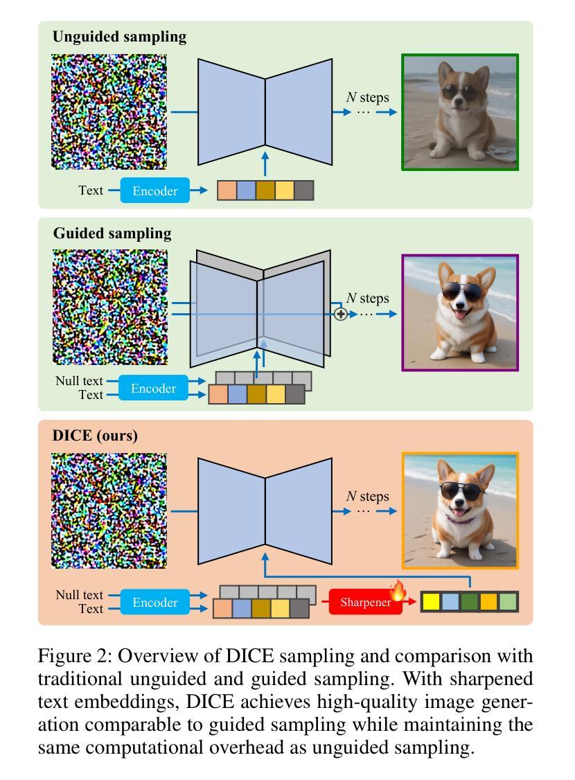 - DICE方法通过精炼文本嵌入替代CFG,降低计算复杂度,同时保持生成质量。